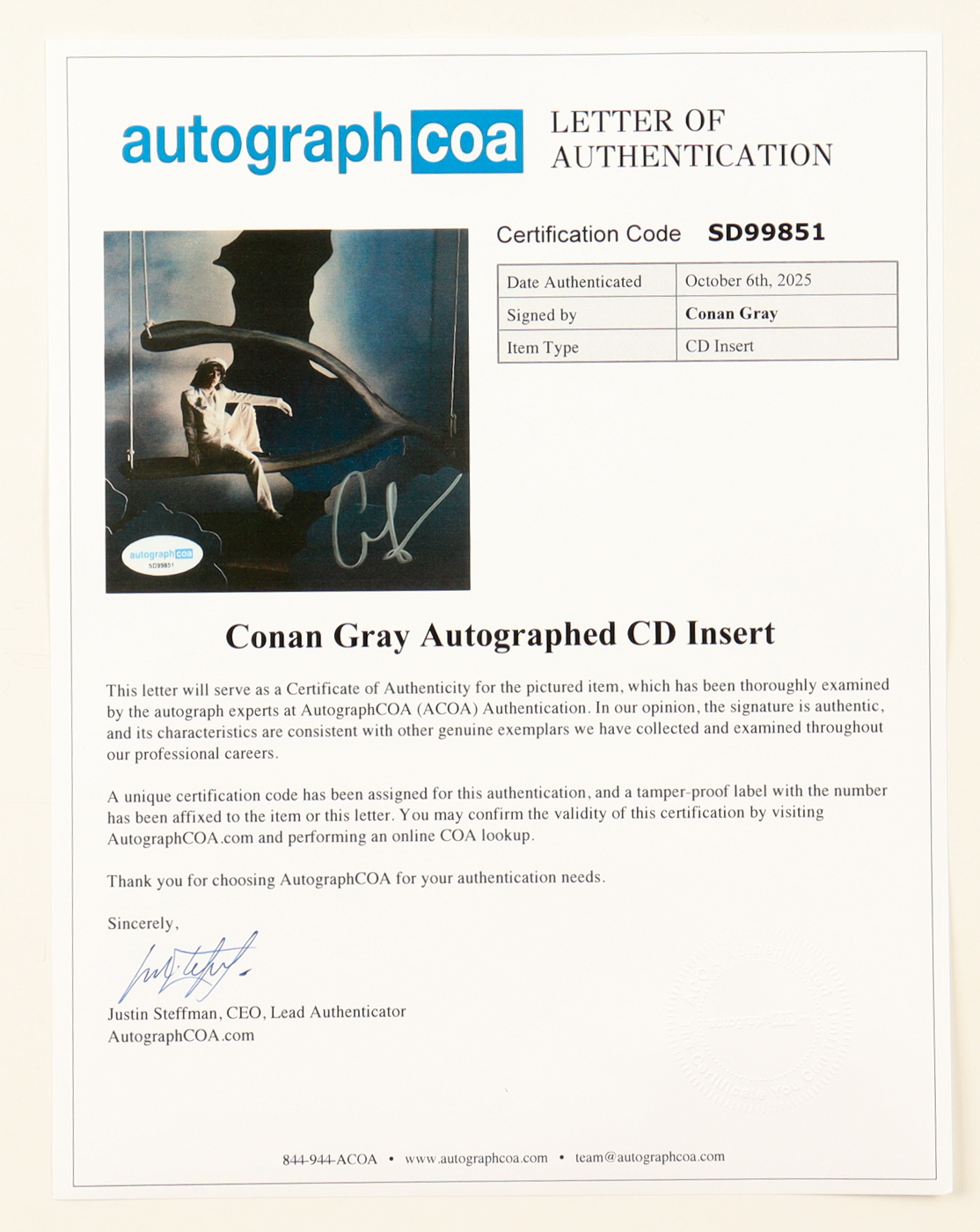 Matted insert display measures approximately 8" x 13.5" in size. Features a CD insert that has been hand-signed by Canon Gray. Please note, the CD is included. Refer to photos for more details.