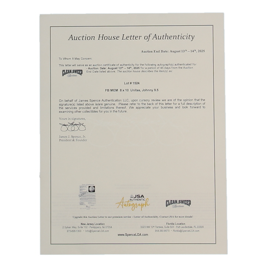 The autograph(s) includes a James Spence Authentication (JSA) Auction House LOA for authenticity purposes.