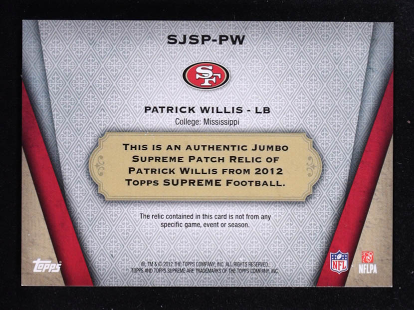 Patrick Willis 2012 Topps Supreme Jumbo Supreme Patches #SJSPPW #4/5