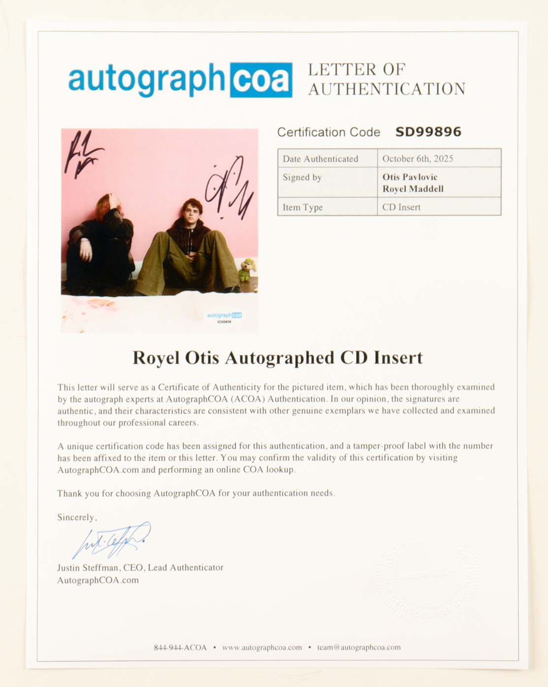 Matted insert display measures approximately 8" x 13.5" in size. Features a CD insert that has been hand-signed by Otis Pavlovic and Royel Maddell. Please note, the CD is included. Refer to photos for more details.