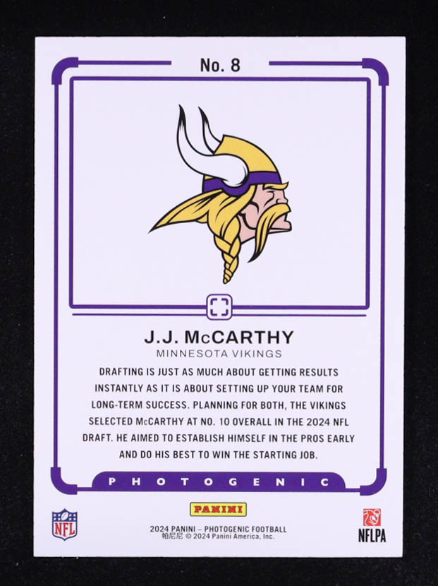 JJ McCarthy 2024 Panini PhotoGenic Draft Snapshots Red #8 #12/49 RC