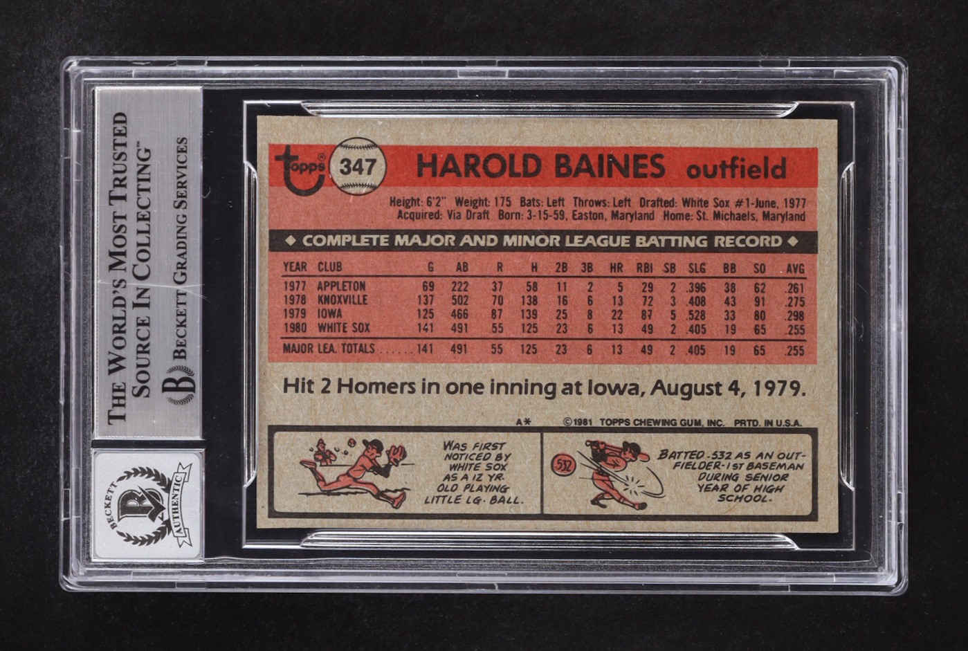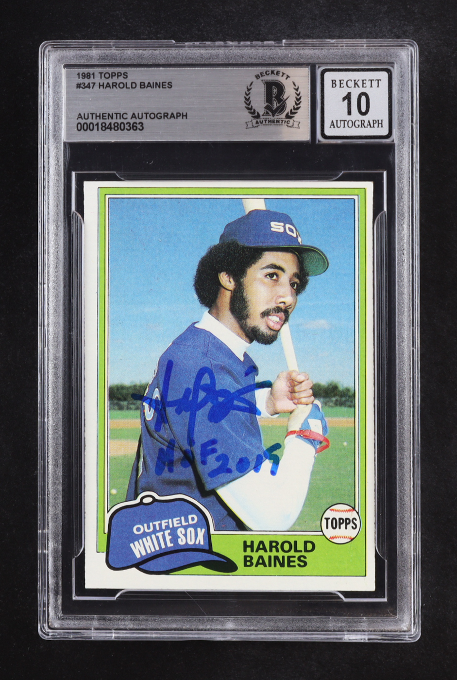 Harold Baines Signed 1981 Topps Inscribed "HOF 2019" Auto #347 RC (Beckett | Autograph Grade BGS 10)
