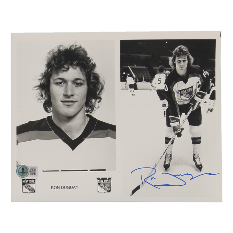 Photograph measures 8" x 10" in size and has been hand-signed by Ron Duguay (New York Rangers).