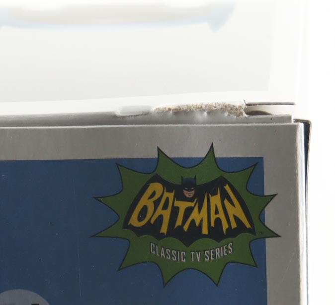 Vinyl figure measures approximately 4" tall and has been hand-signed by Adam West. Please note that there is damage to the original box.