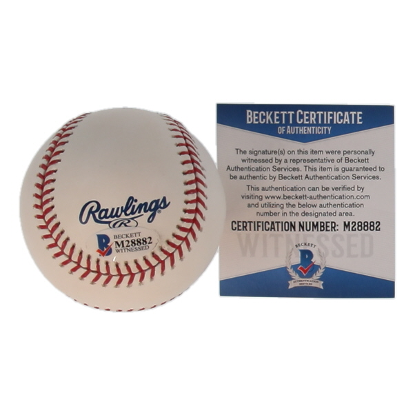 The autograph includes an official Beckett Authentication Services serially-numbered hologram and matching COA for authenticity purposes. The signing of this item was witnessed by Beckett.