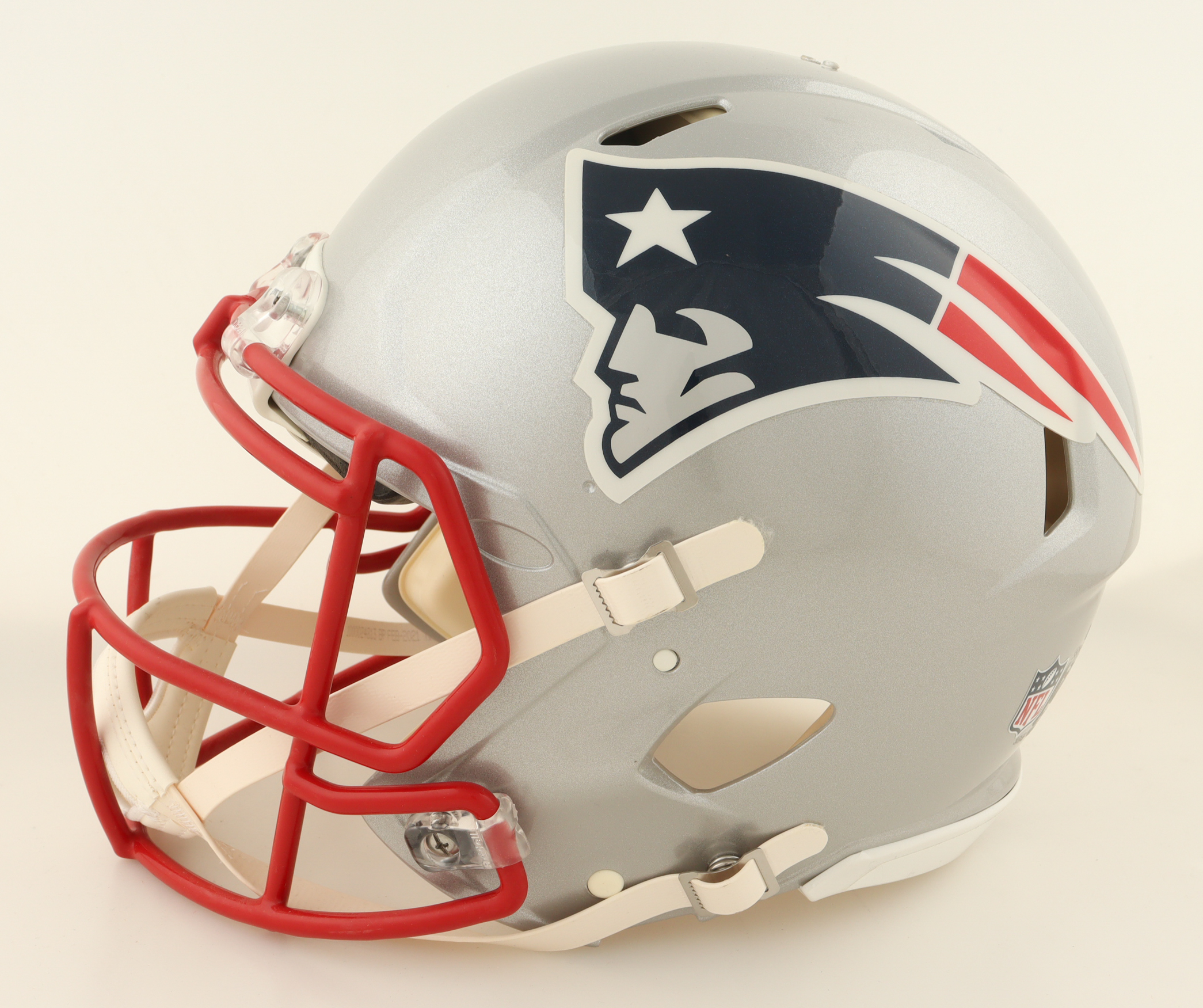 Riddell New England Patriots Full-Size Authentic On-Field Speed helmet. Hand-signed by Mac Jones.