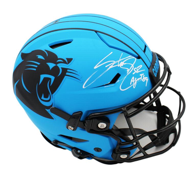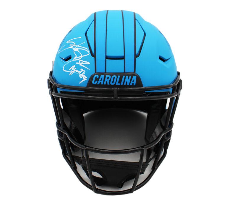 Riddell Carolina Panthers full-size authentic on-field rave alternate speedflex helmet. Hand-signed by Steve Smith Sr. (HOF).