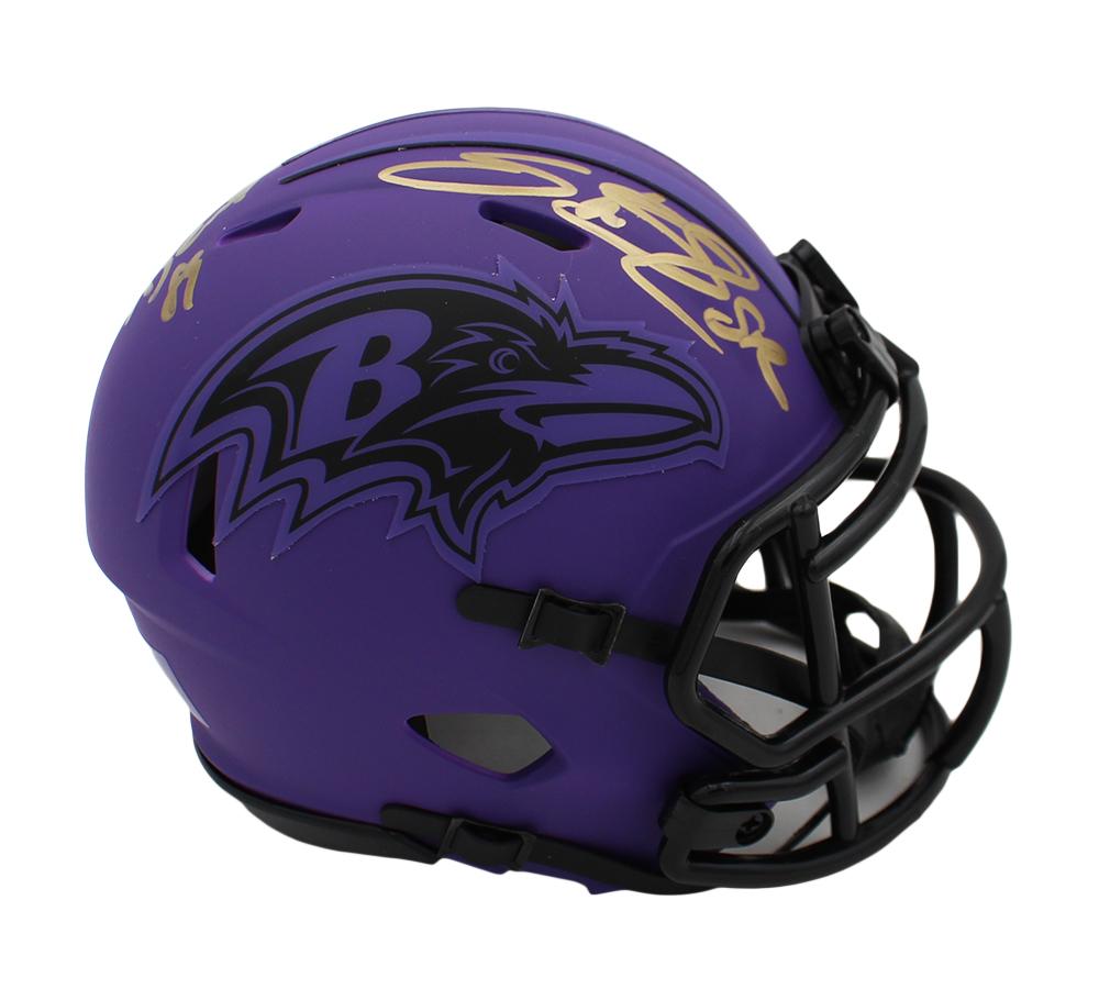 Riddell Baltimore Ravens rave alternate speed mini helmet has been hand-signed and inscribed by Steve Smith Sr.