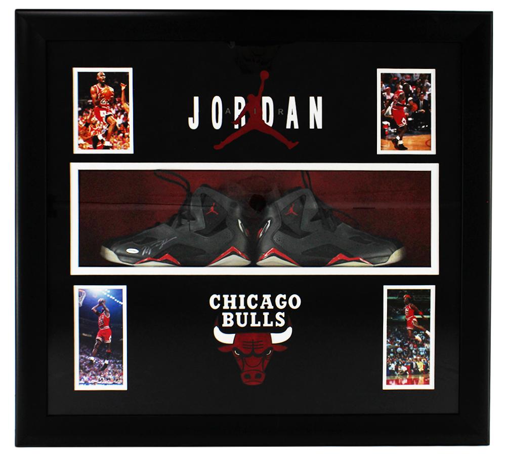 Michael Jordan Signed Bulls Custom Shadowbox Jordan Basketball Shoes (UDA)