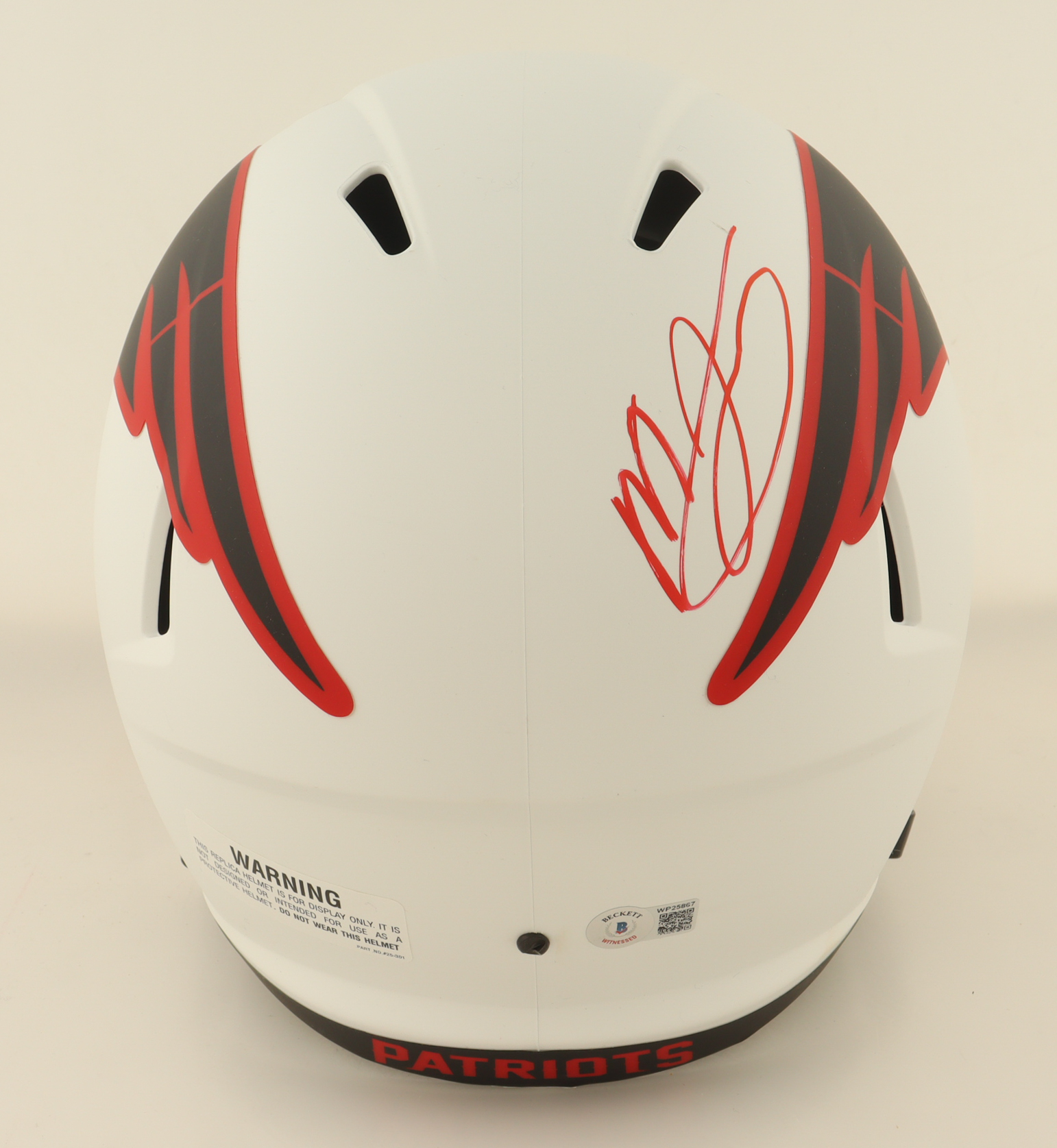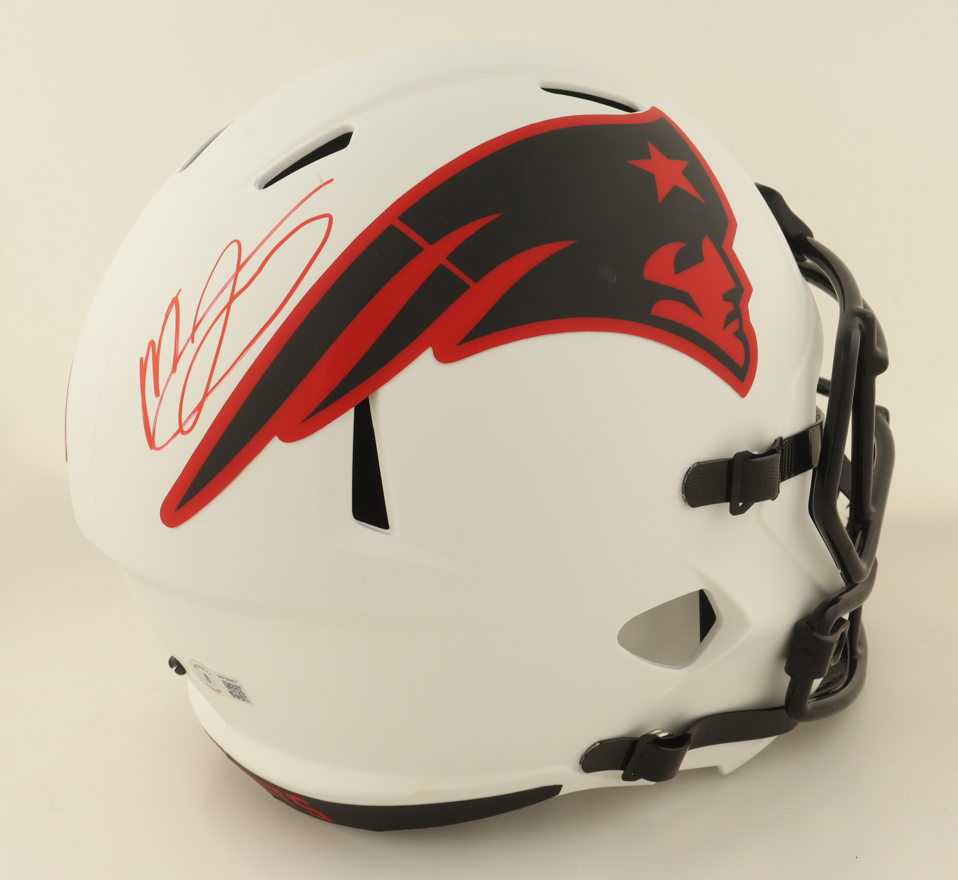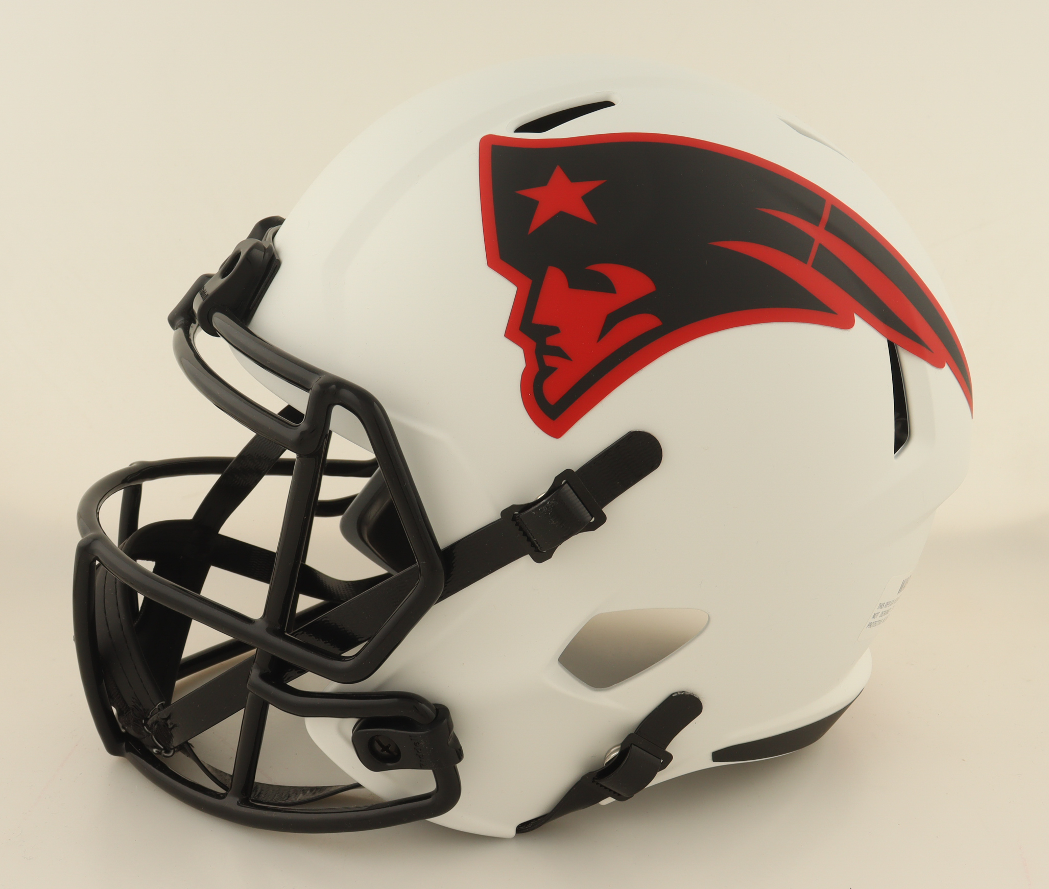 Riddell New England Patriots Full-Size Lunar Eclipse Alternate Speed replica helmet. Hand-signed by Mac Jones.