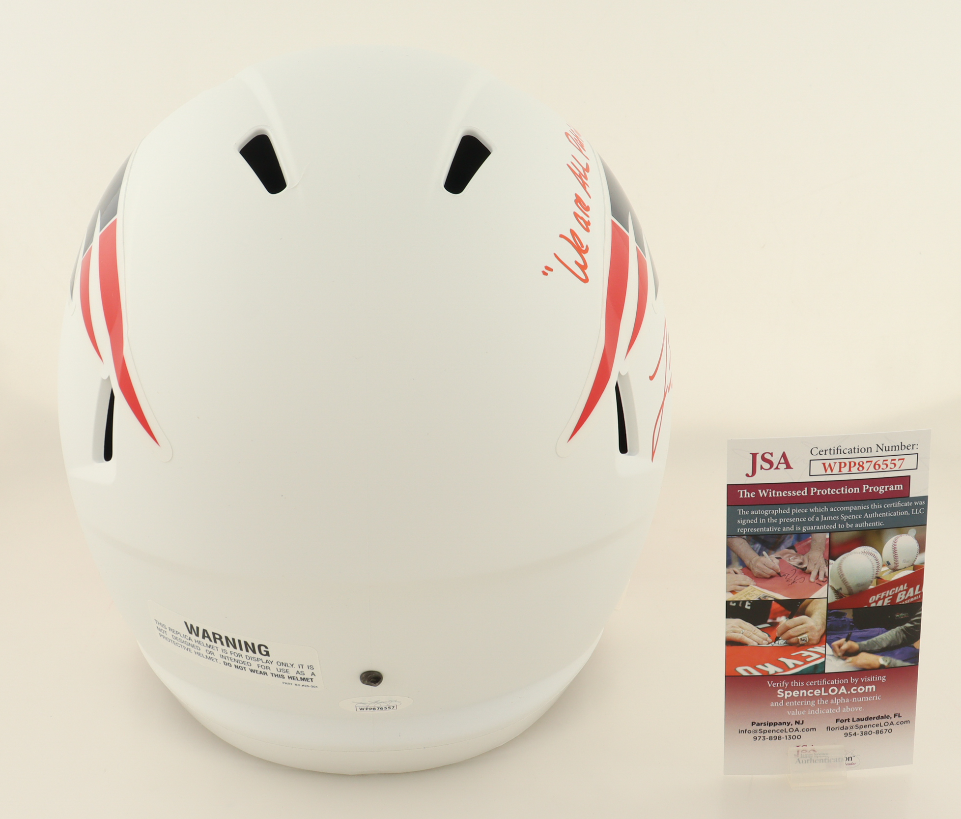 Jarrett Stidham Signed Patriots Full-Size Flat White Alternate Speed Helmet Inscribed "We Are All Patriots" (JSA)