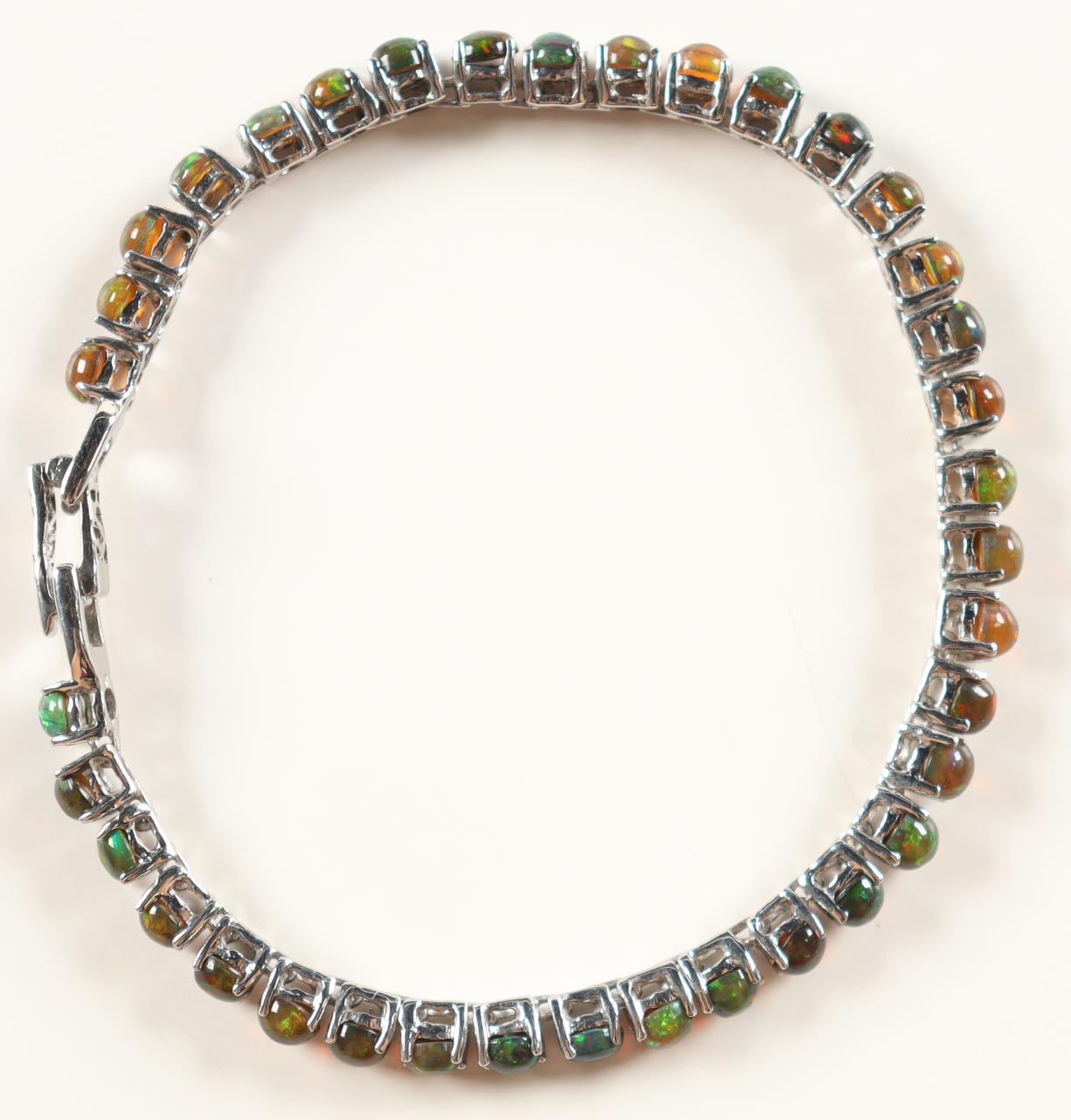 Ladies Black Opal Bracelet. Bracelet Is Made Of Rhodium Over Sterling Silver. Measures 7 Inches In Length. Details Below: