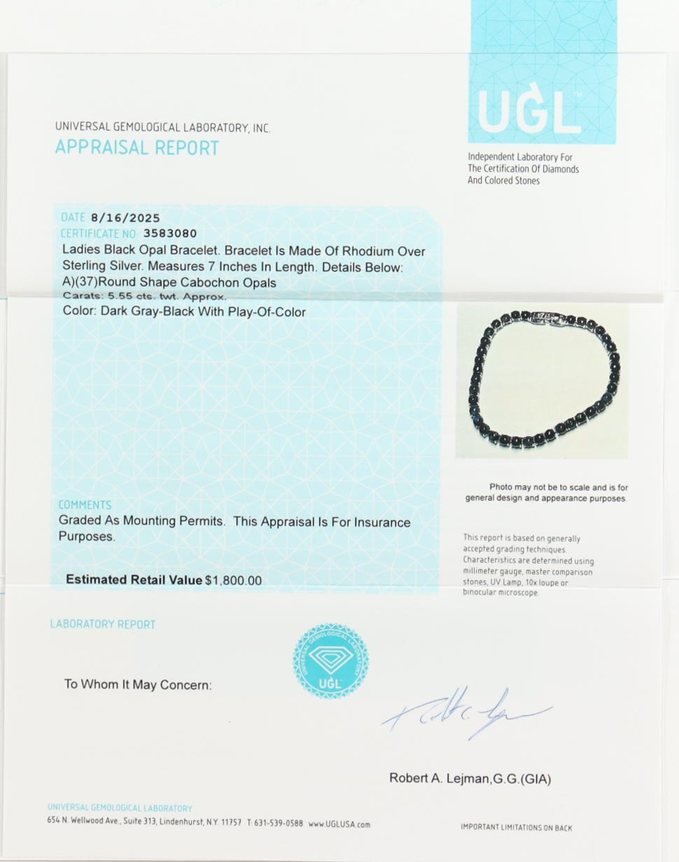 New 5.55 CTW Black Opal Bracelet | Estimated Retail Value: $1,800 (UGL)