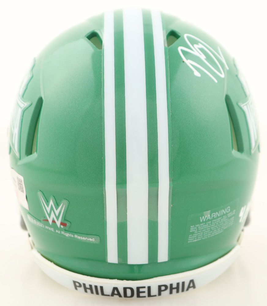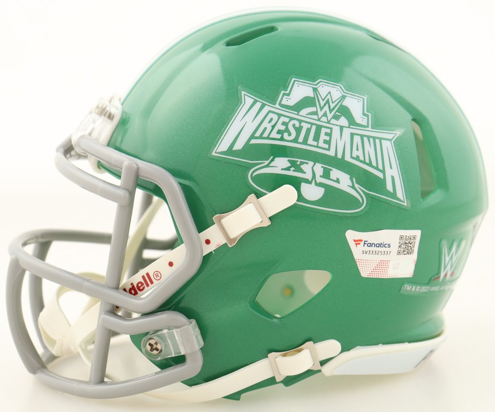 Riddell Wrestlemania XL Speed Mini Helmet. Hand-signed by Pete Dunne and Tyler Bate. The item is limited edition and has been hand-numbered #4/5.