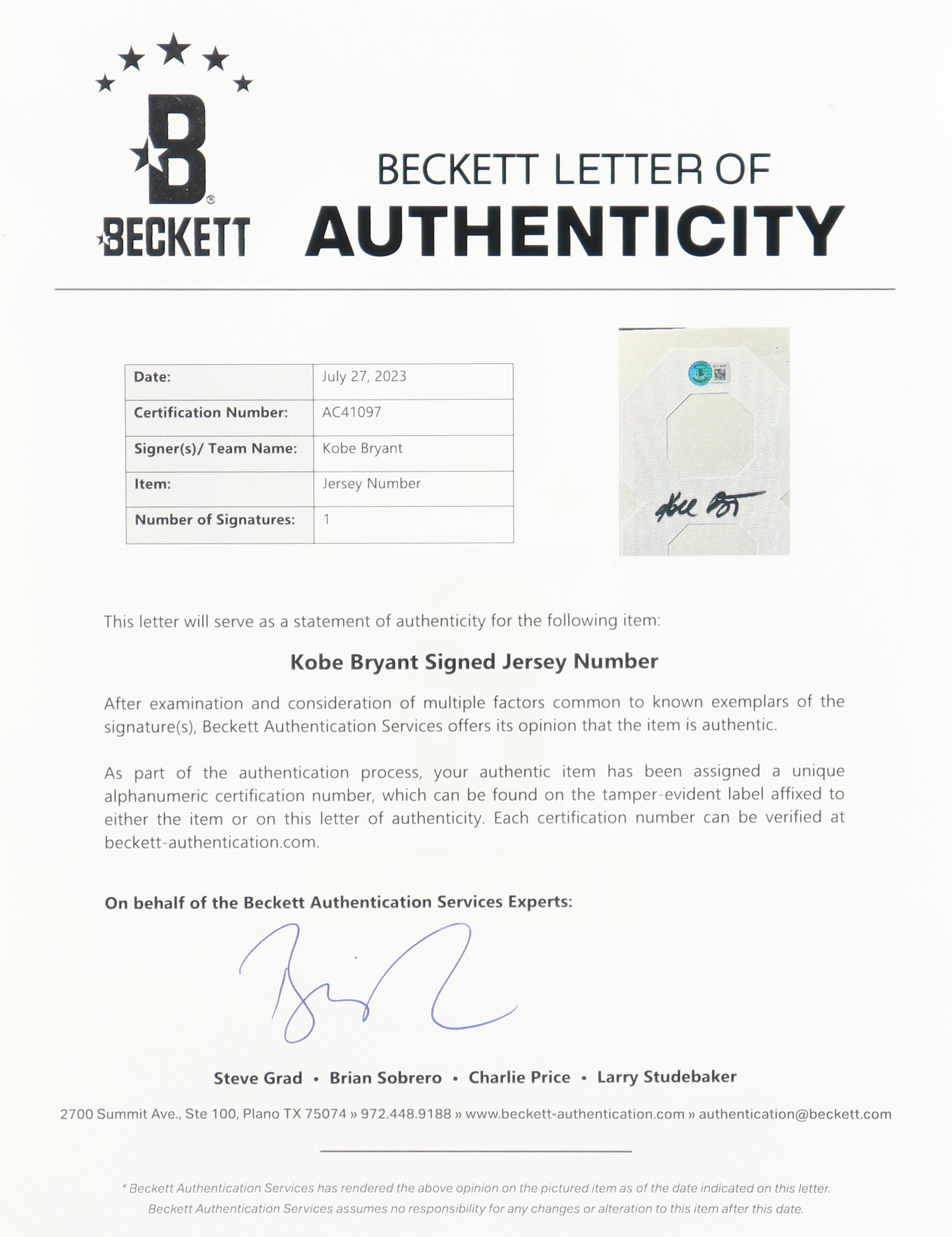 Authentic Mitchell & Ness jersey with everything sewn on, size XL. Hand-signed on the back number by Los Angeles Lakers icon, Kobe Bryant!