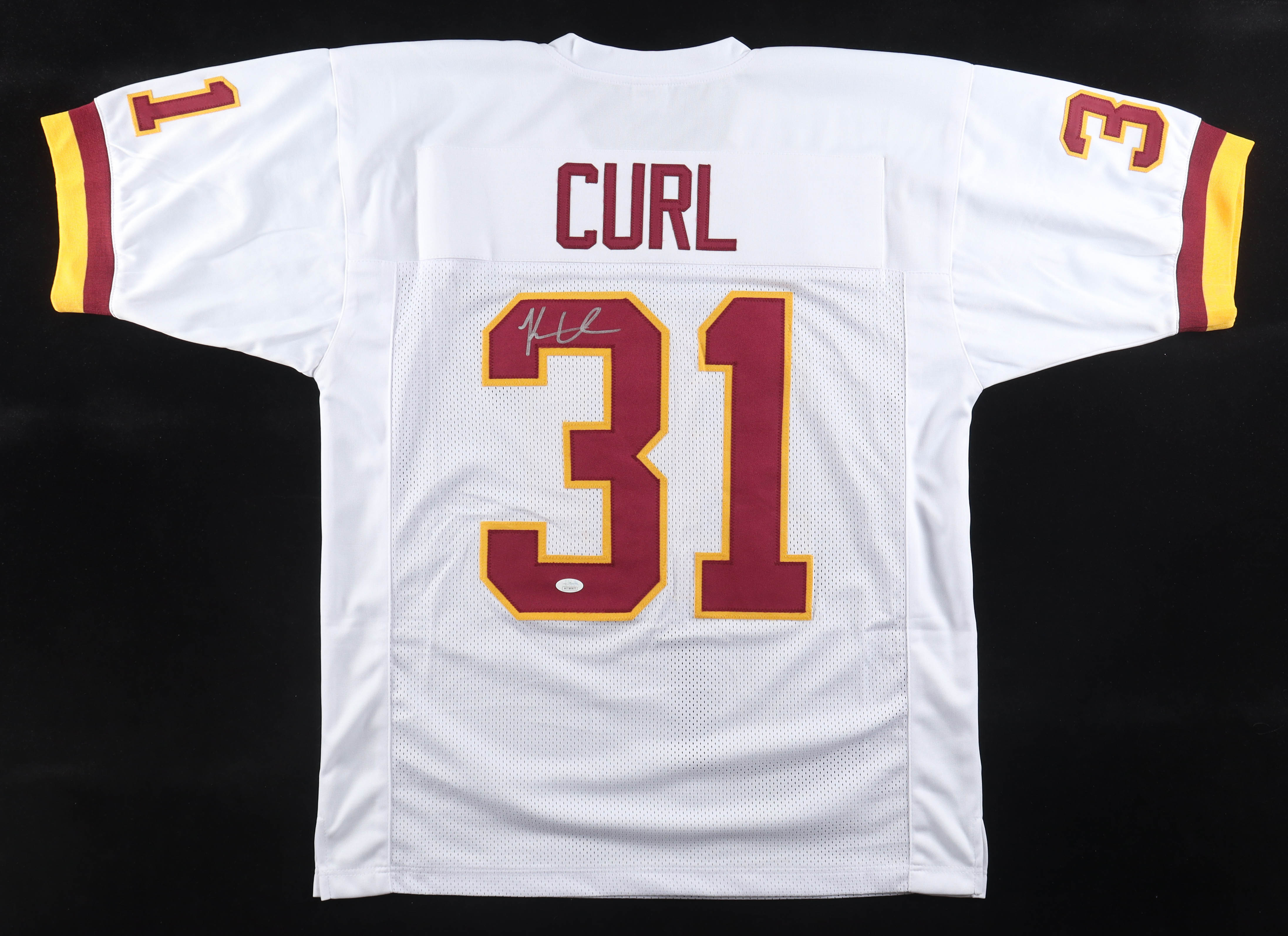 Custom jersey with everything sewn on, size L. Hand-signed by Kamren Curl.