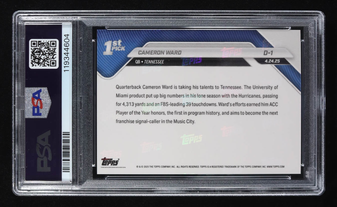 Cameron Ward 2025 Topps Now #D1 RC (PSA 10)