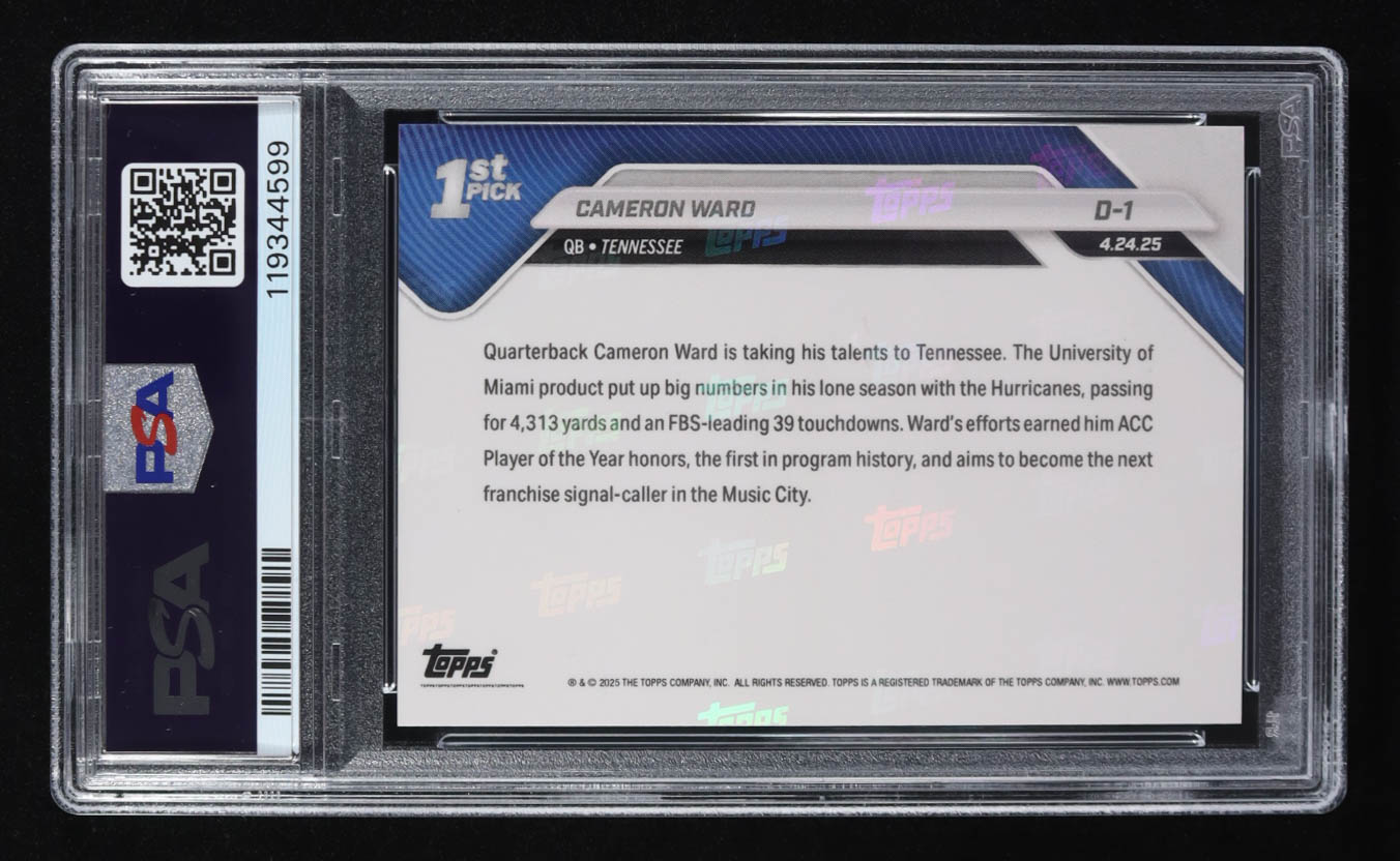 Cameron Ward 2025 Topps Now #D1 RC (PSA 10)
