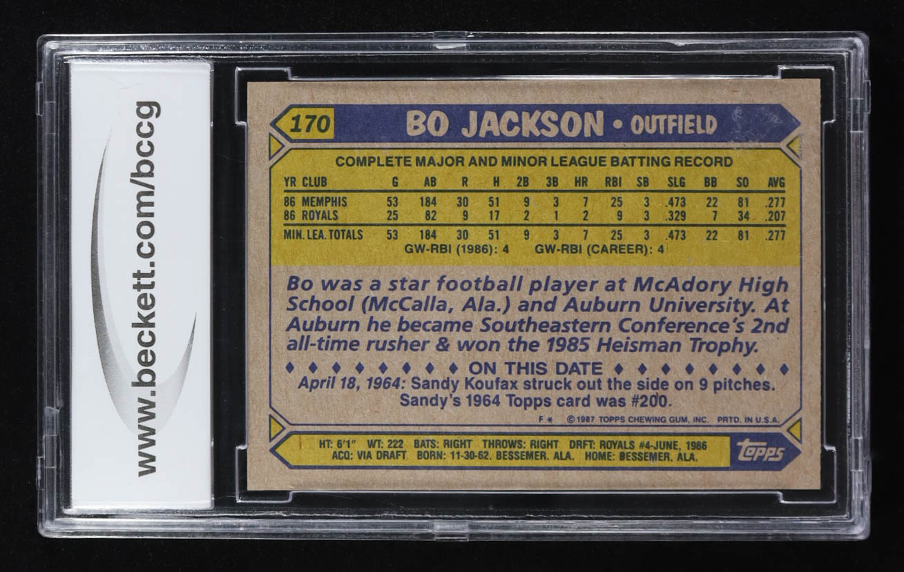 Bo Jackson 1987 Topps Future Stars #170 RC (BCCG 10)