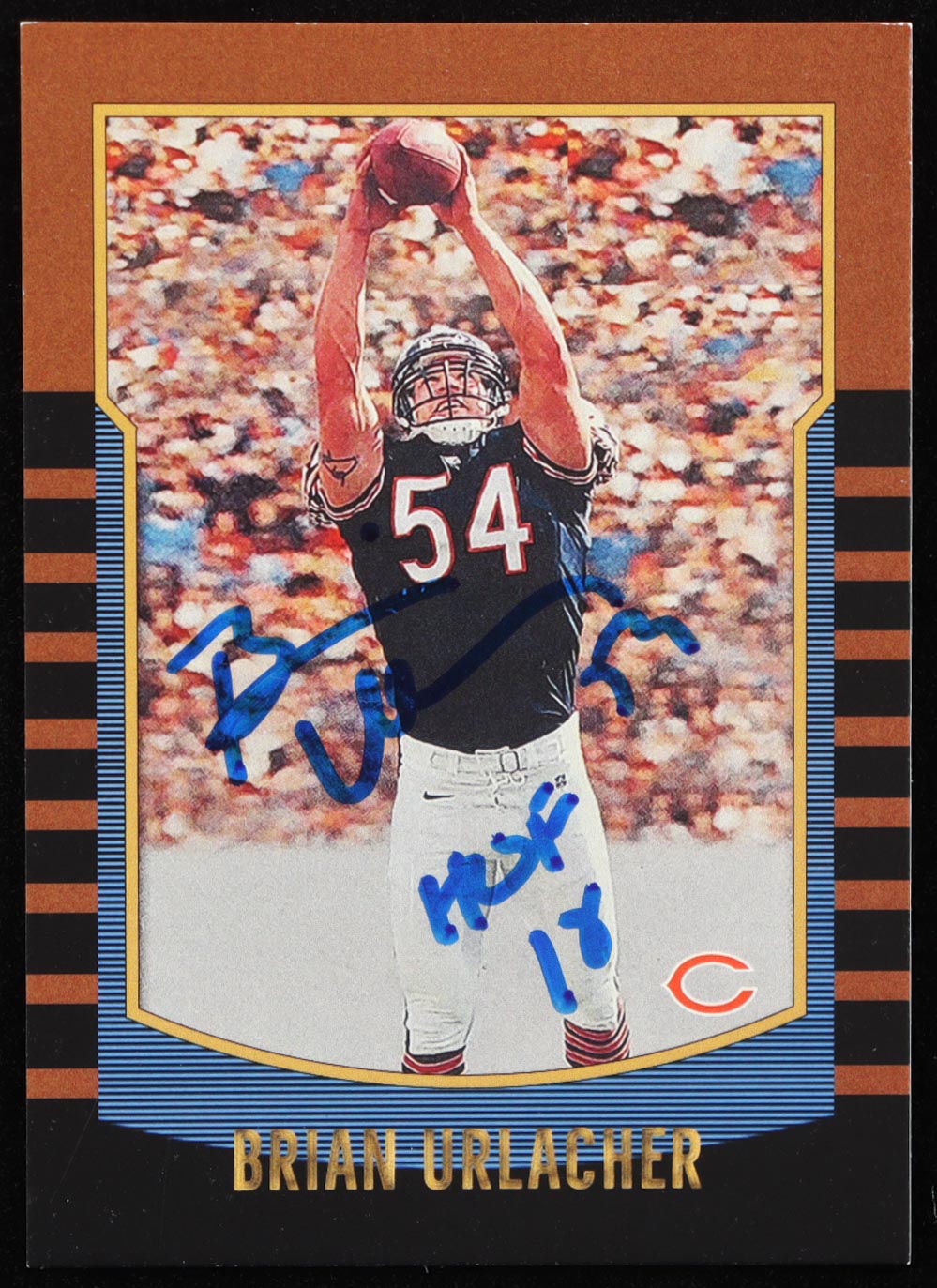 Card has been hand-signed and inscribed by Brian Urlacher. Please see photos for more details regarding the condition of the card (Chicago Bears, HOF).