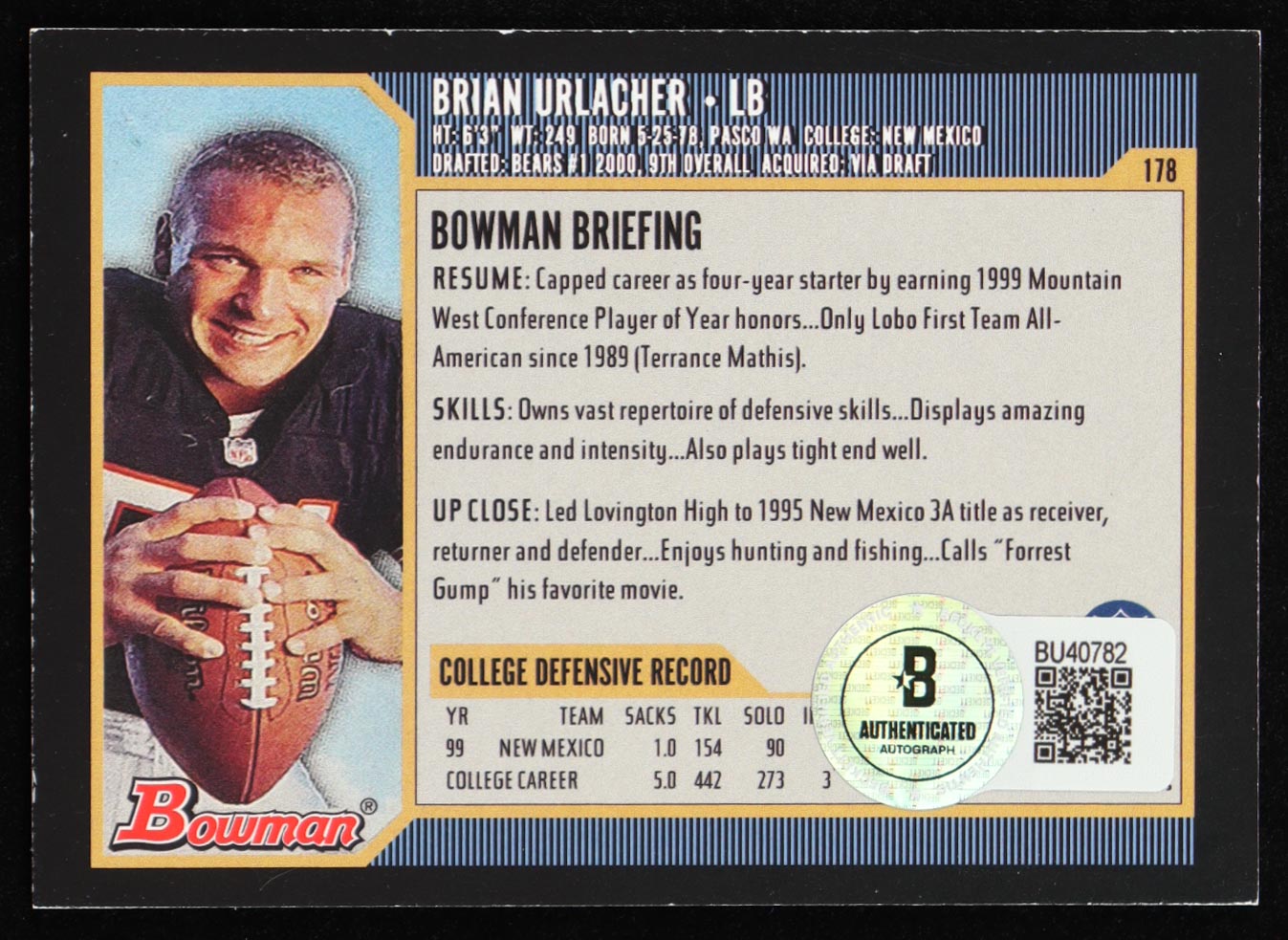 Brian Urlacher Signed 2000 Bowman #178 RC Reprint Inscribed "HOF 18" (Beckett)