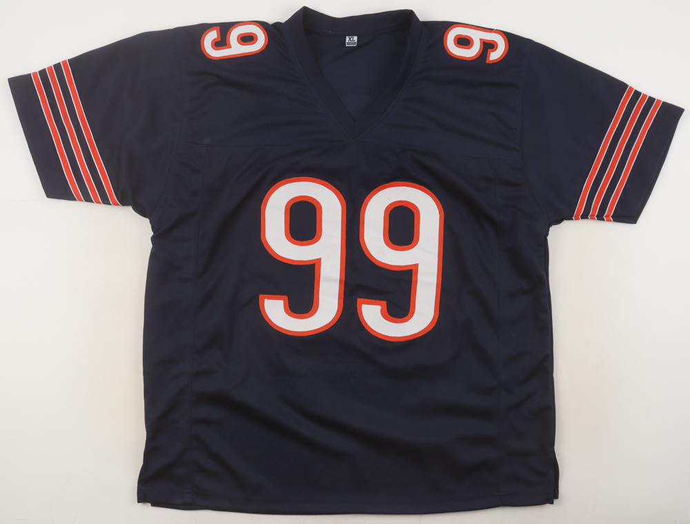 Custom jersey with everything sewn on, size XL. Hand-signed and inscribed by Dan Hampton (Chicago Bears, HOF).