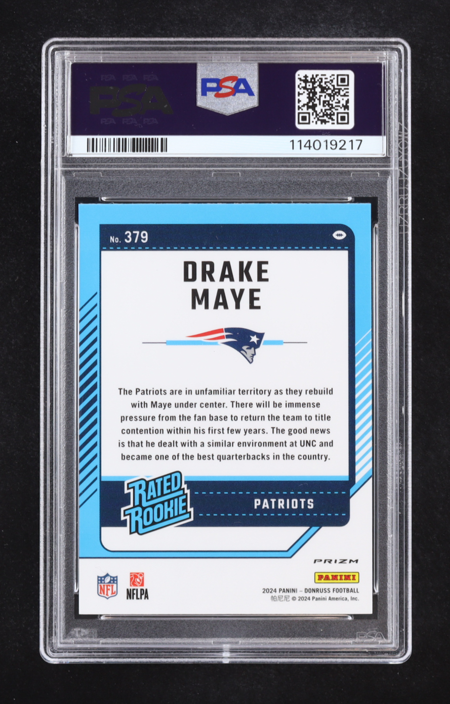 Drake Maye 2024 Donruss Optic Rated Rookies Preview Pink #379 RC (PSA 10)