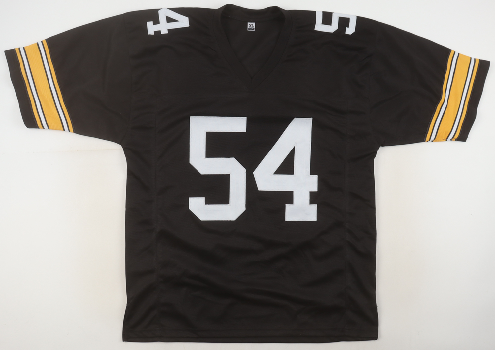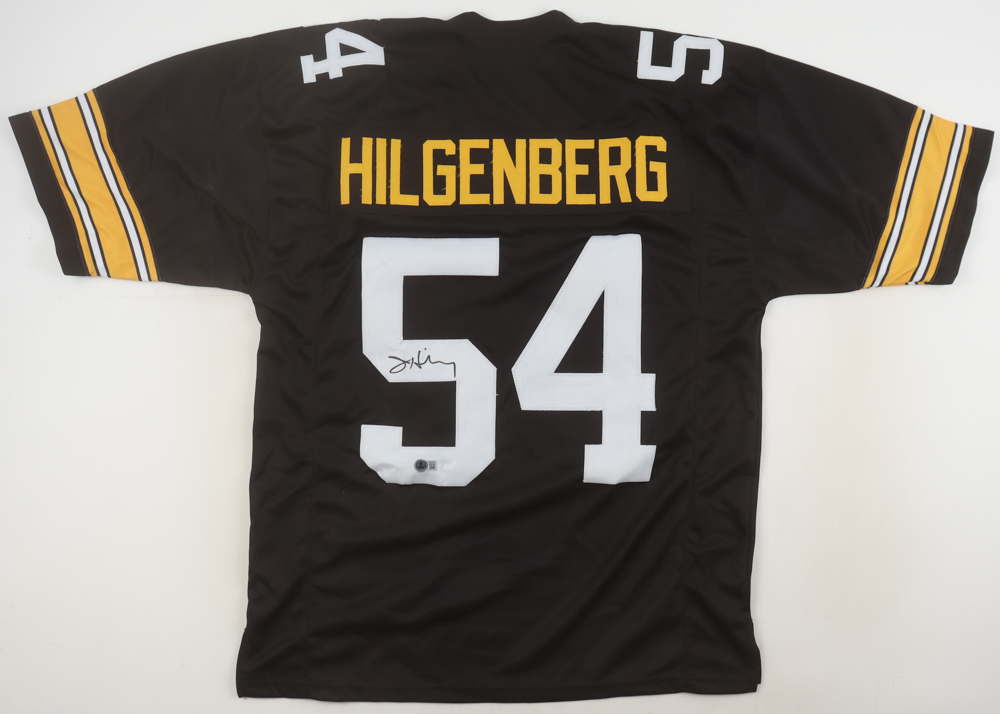 Custom jersey with everything sewn on, size XL. Hand-signed by Jay Hilgenberg (Iowa Hawkeyes).