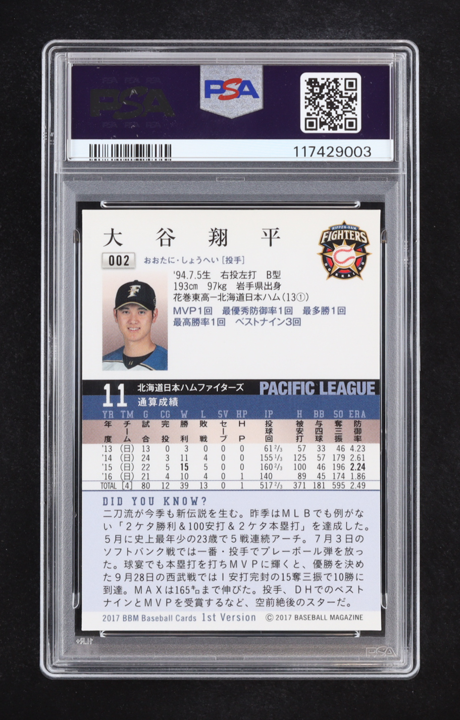 Shohei Ohtani 2017 BBM 1st Version #2 RC (PSA 10)