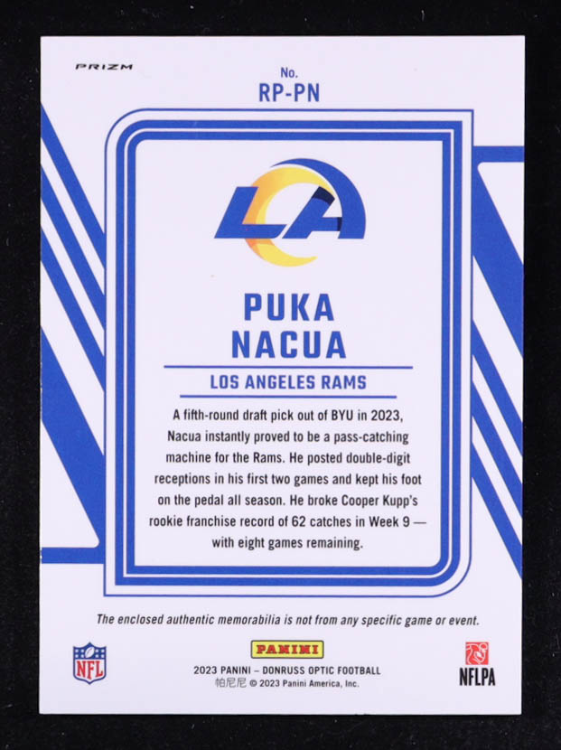 Puka Nacua 2023 Donruss Optic Rookie Phenoms Jerseys Blue Hyper #10 RC