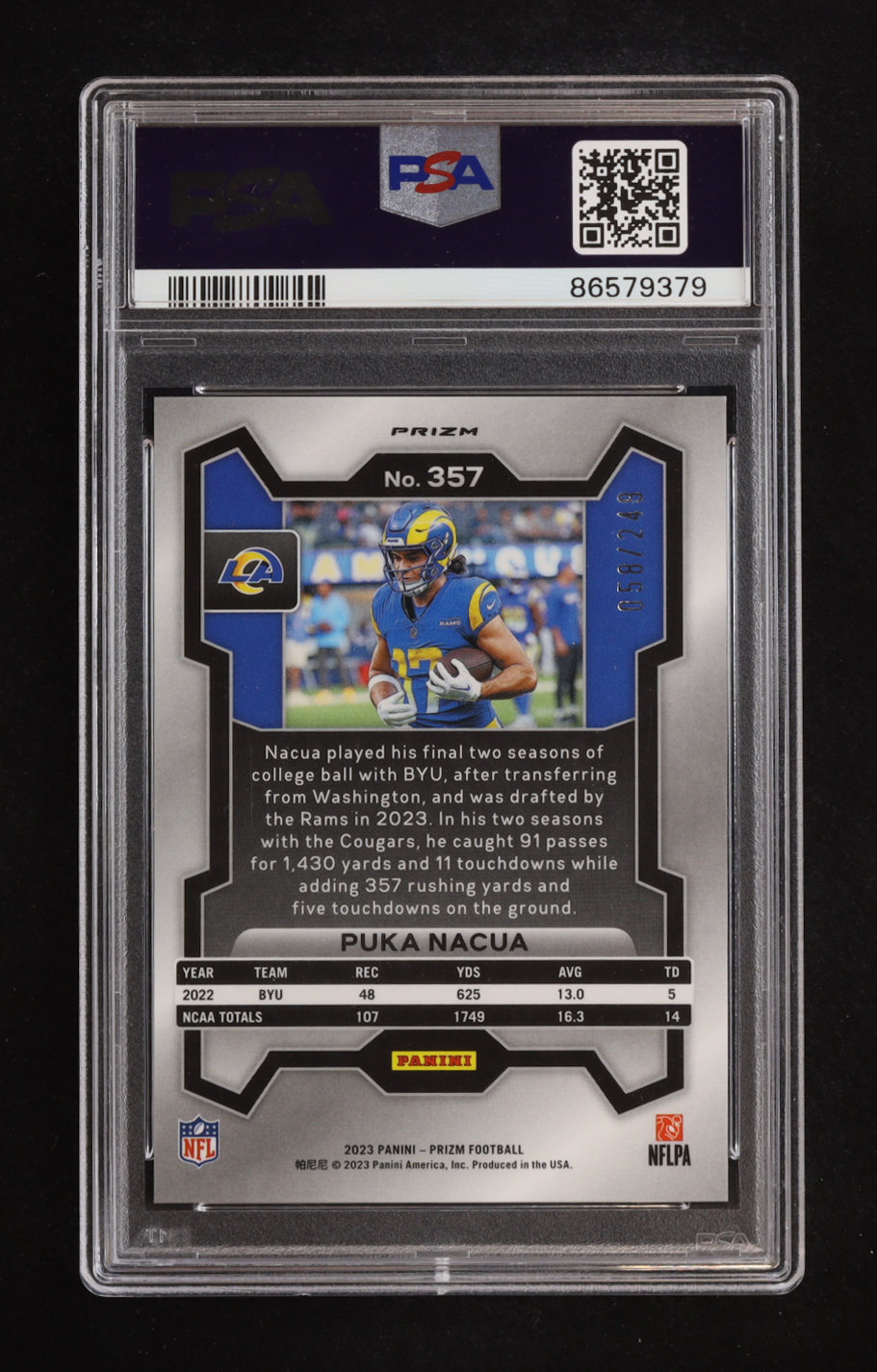 Puka Nacua 2023 Panini Prizm Prizms Orange #357 RC #058/249 (PSA 10)
