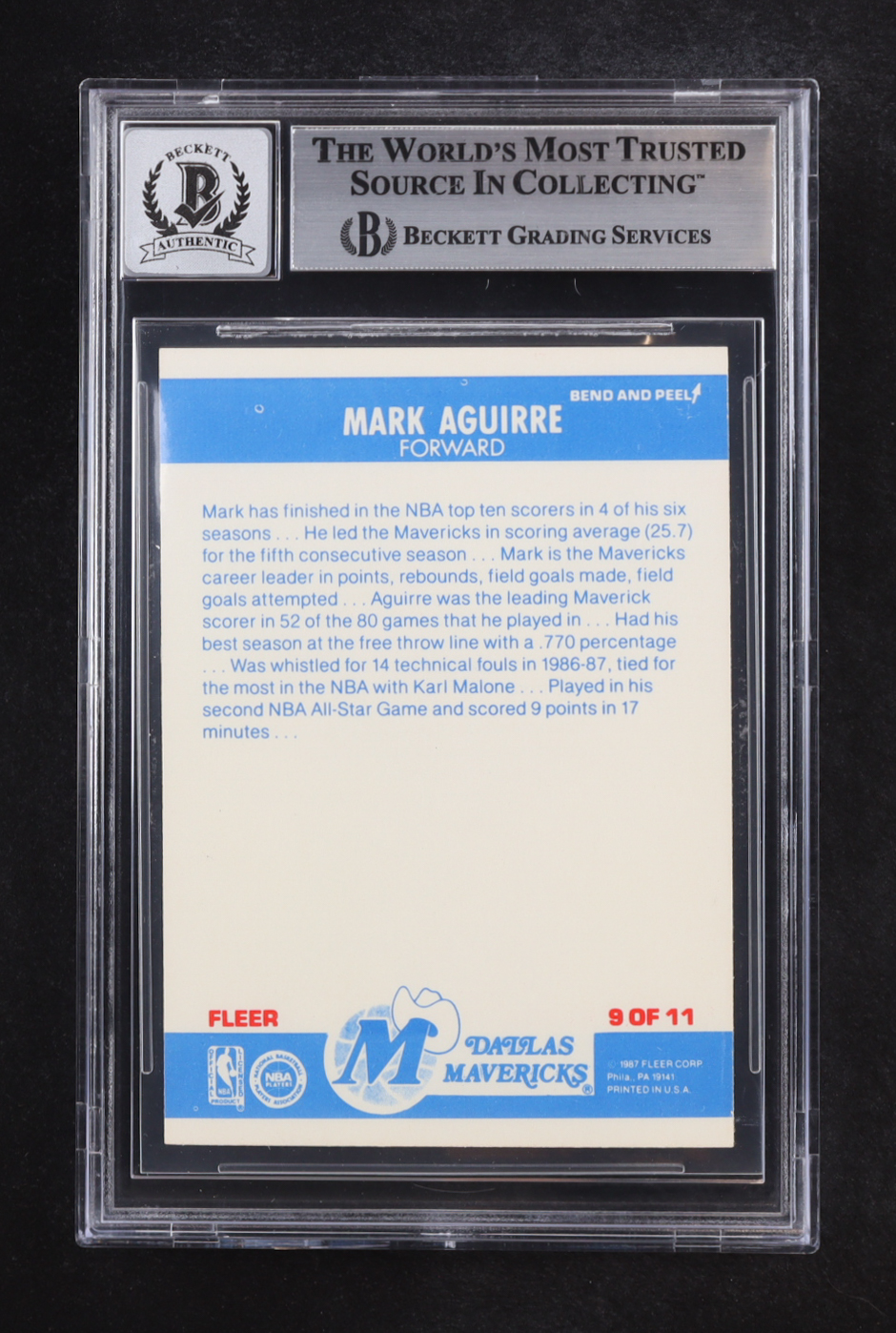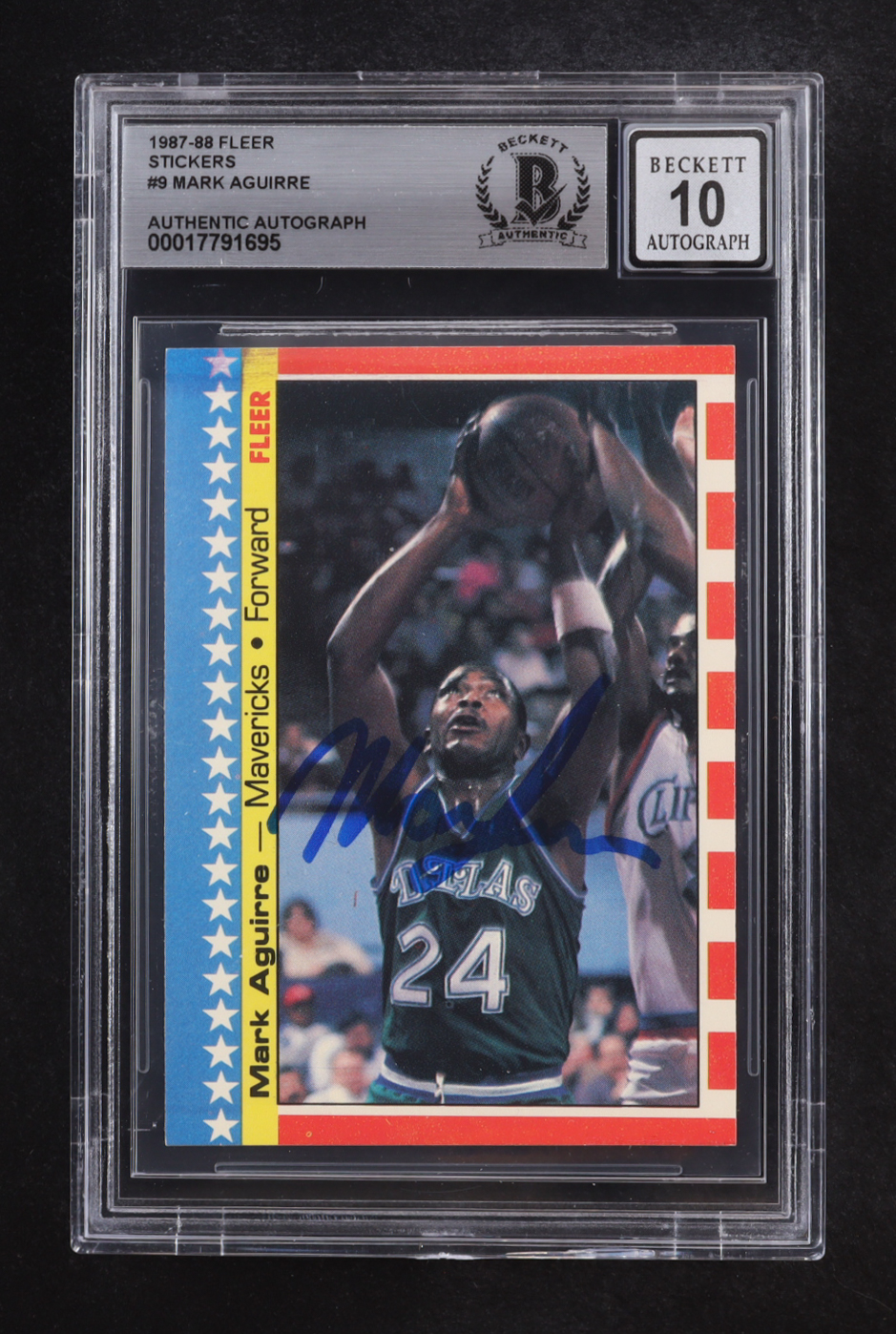 Mark Aguirre Signed 1987-88 Fleer Stickers #9 (BGS | Auto 10)