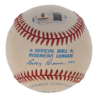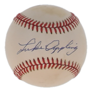 Rawlings Official American League Baseball. Hand-signed by Luke Appling (D. 1991, Chicago White Sox, HOF). Please note, the baseball is naturally toned and stained.