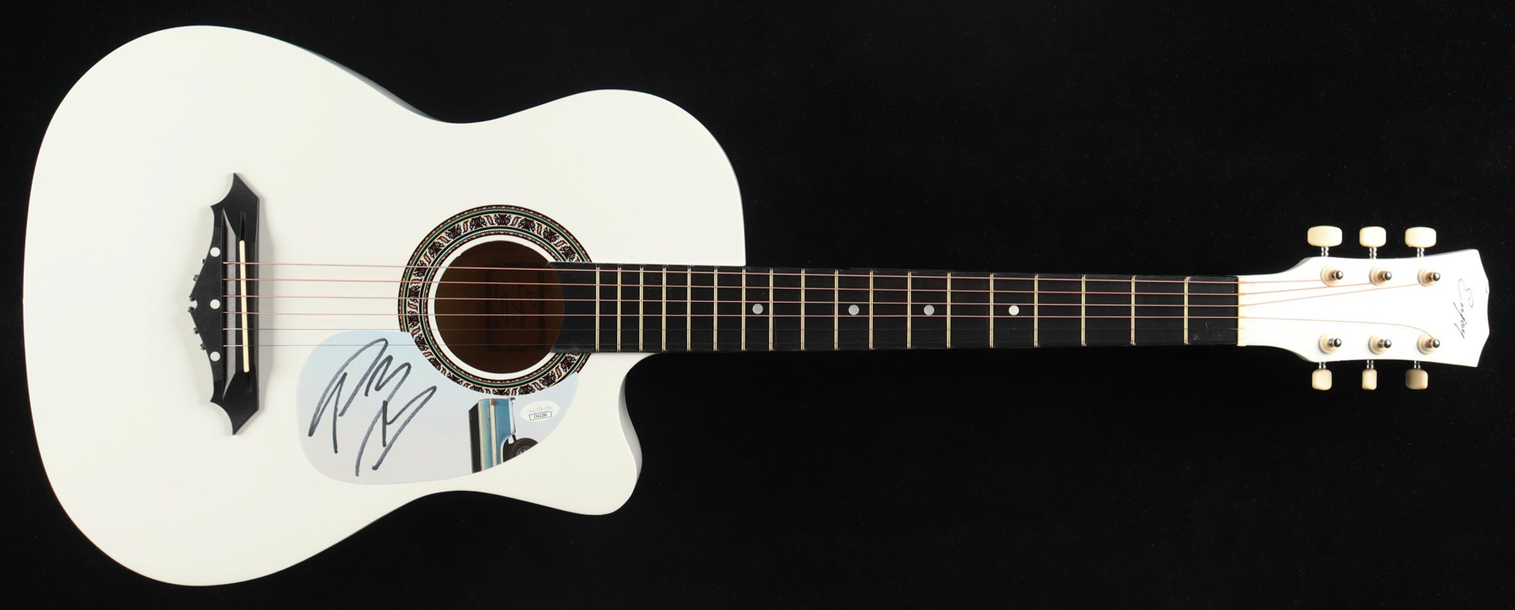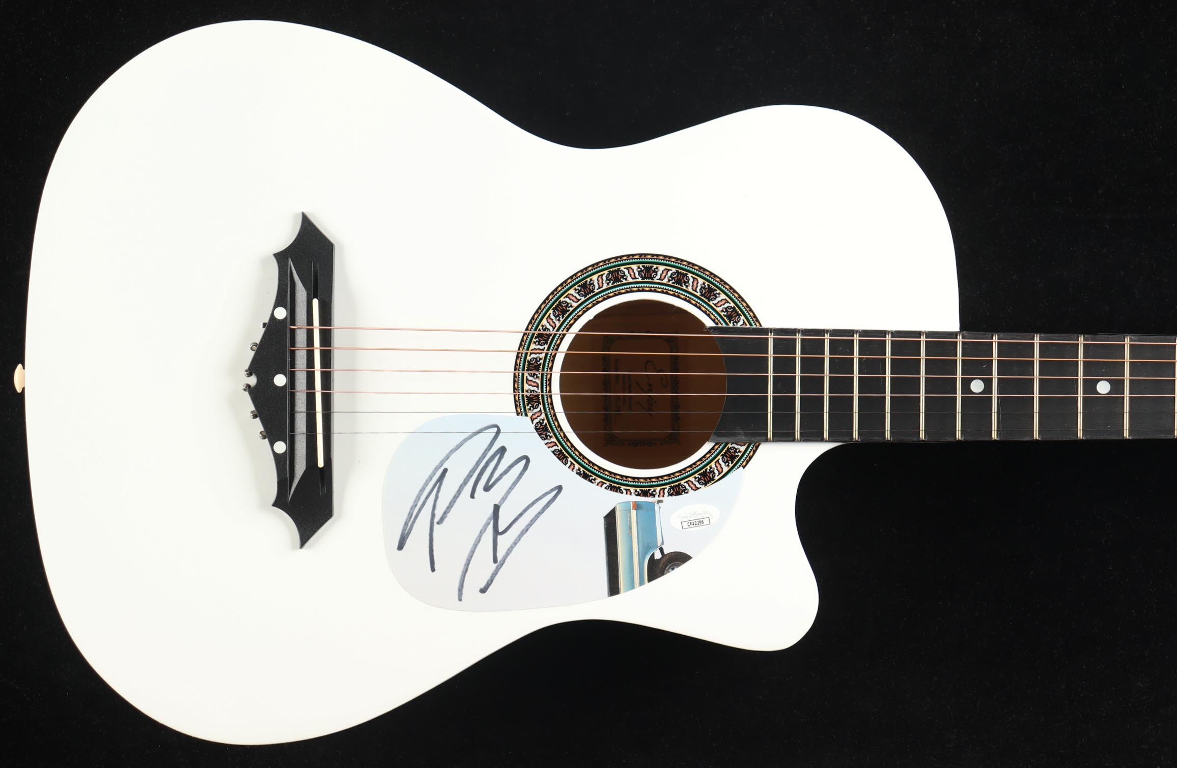 Enjoy Acoustic guitar measures approximately 38" in length and has been hand-signed on a cut that has been repurposed as a pick-guard by Post Malone.