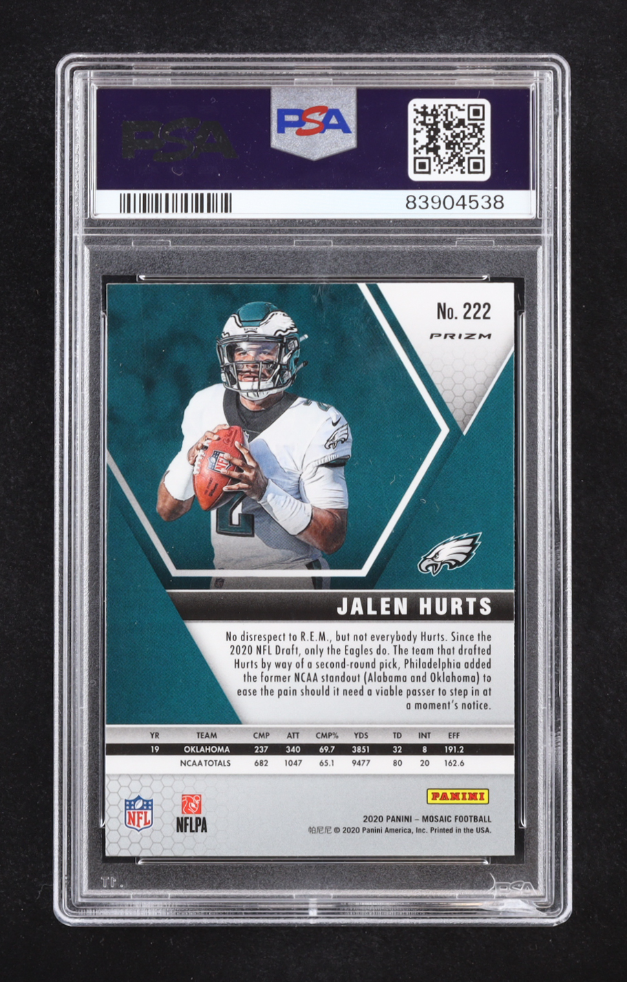 Jalen Hurts 2020 Panini Mosaic Mosaic Choice Red and Green #222 RC (PSA 10)