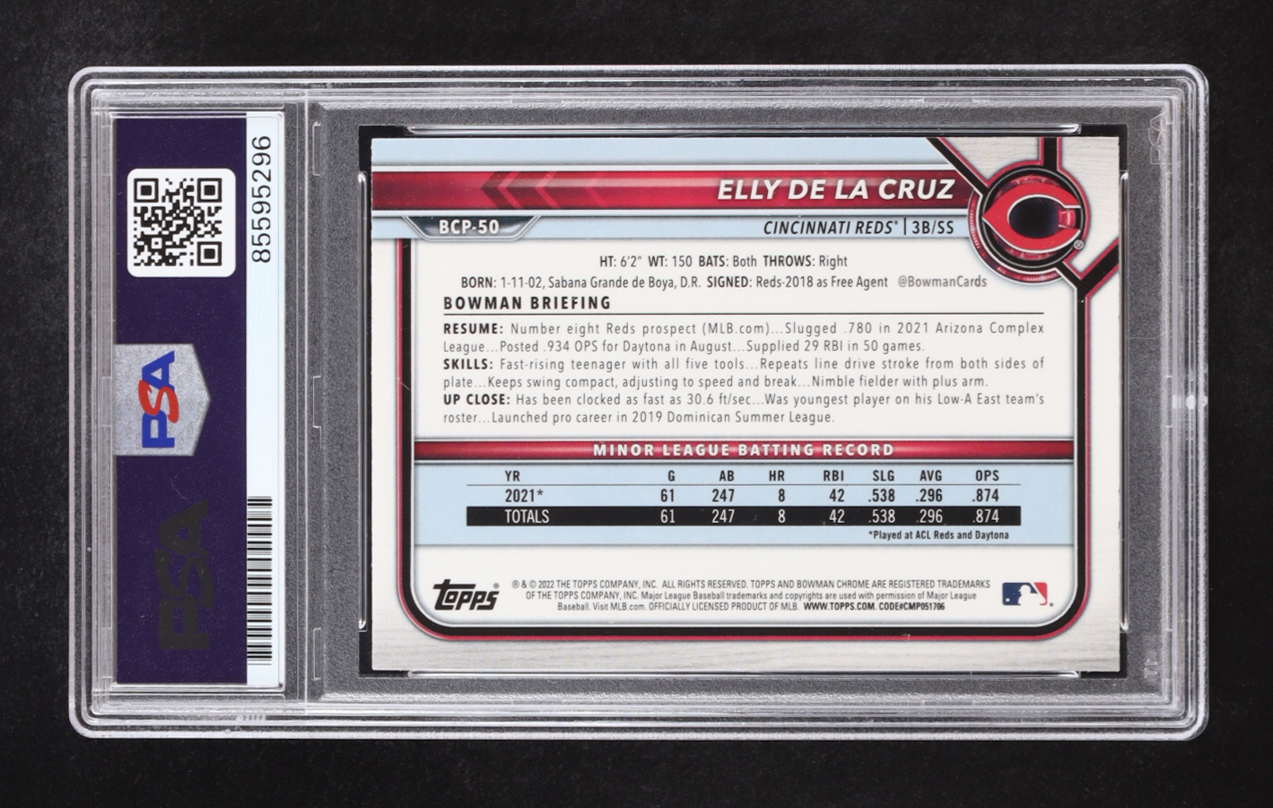 Elly De La Cruz Signed 2022 Bowman Chrome #BCP50 RC (PSA | Auto 10)