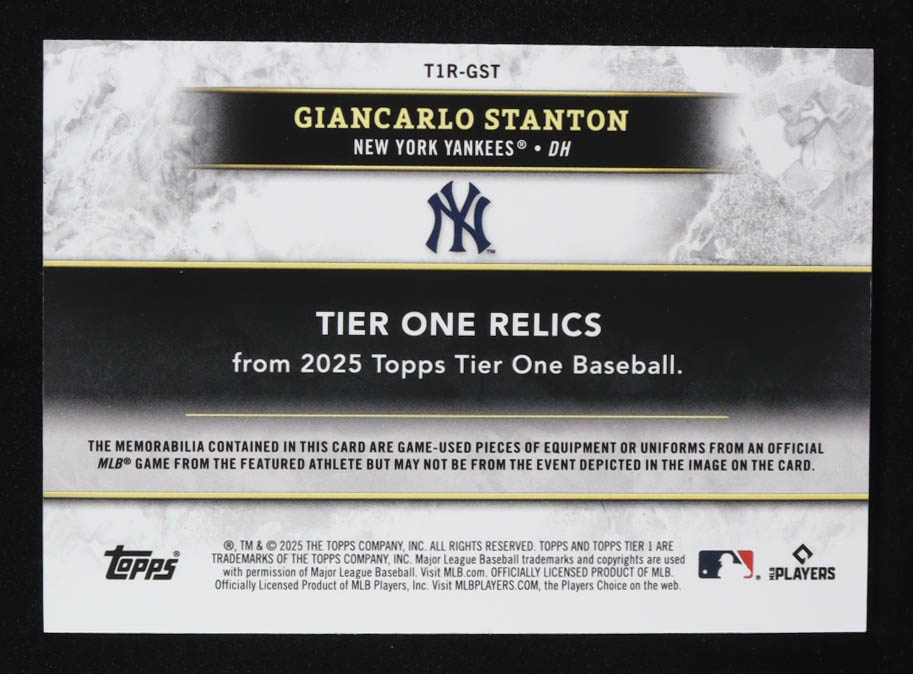 Giancarlo Stanton 2025 Topps Tier One Relics Green Triple Relics #T1RGST #42/49