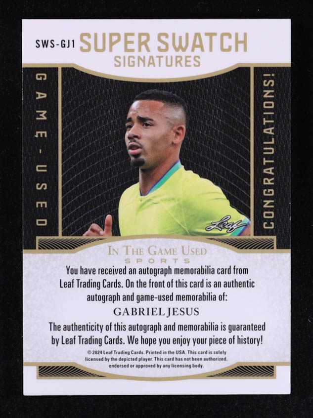 Gabriel Jesus 2024 Leaf ITG Used Sports Super Swatch Signatures Jumbo Materials #SWSGJ1 #15/25