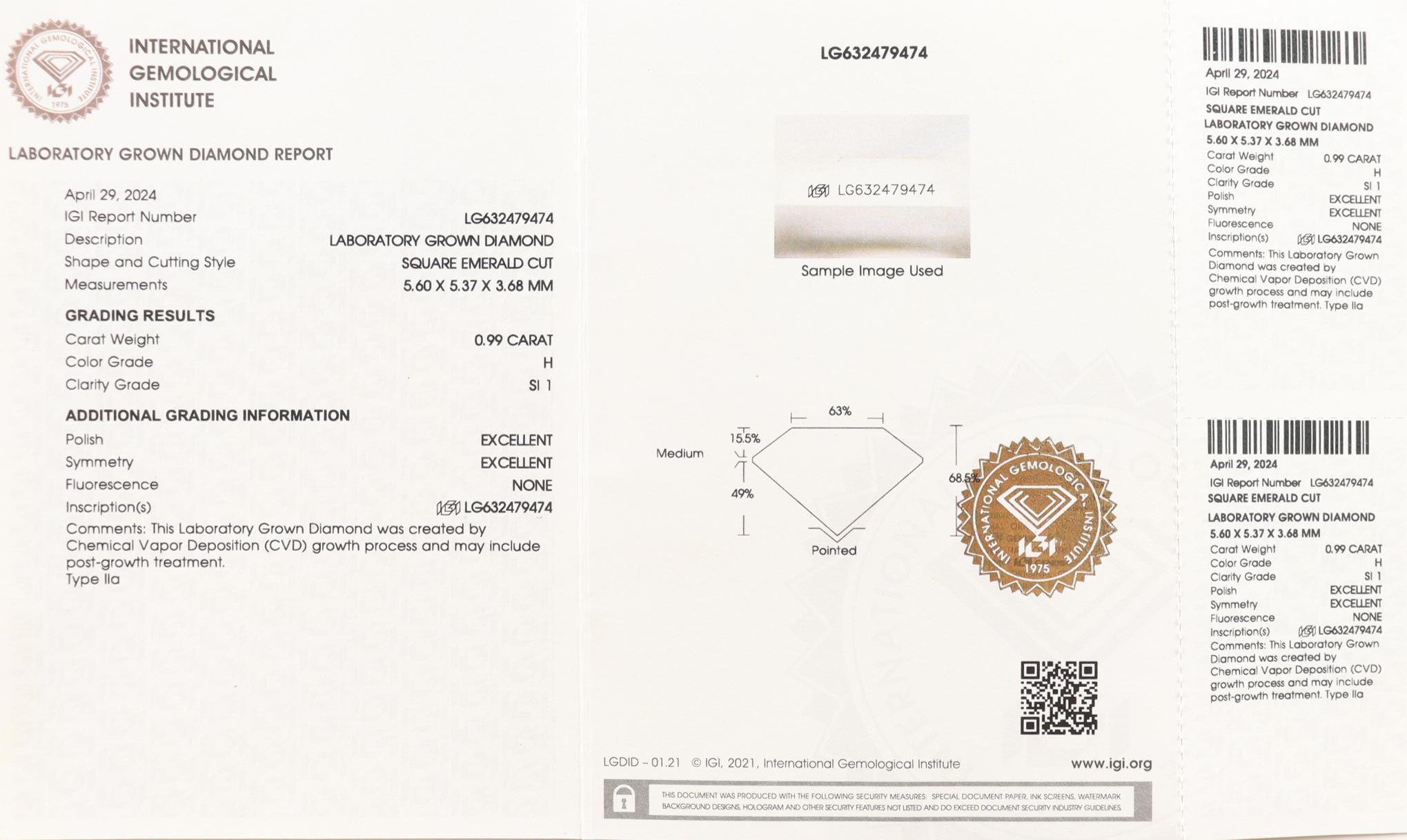 This piece includes paperwork from the International Gemological Institute (IGI).