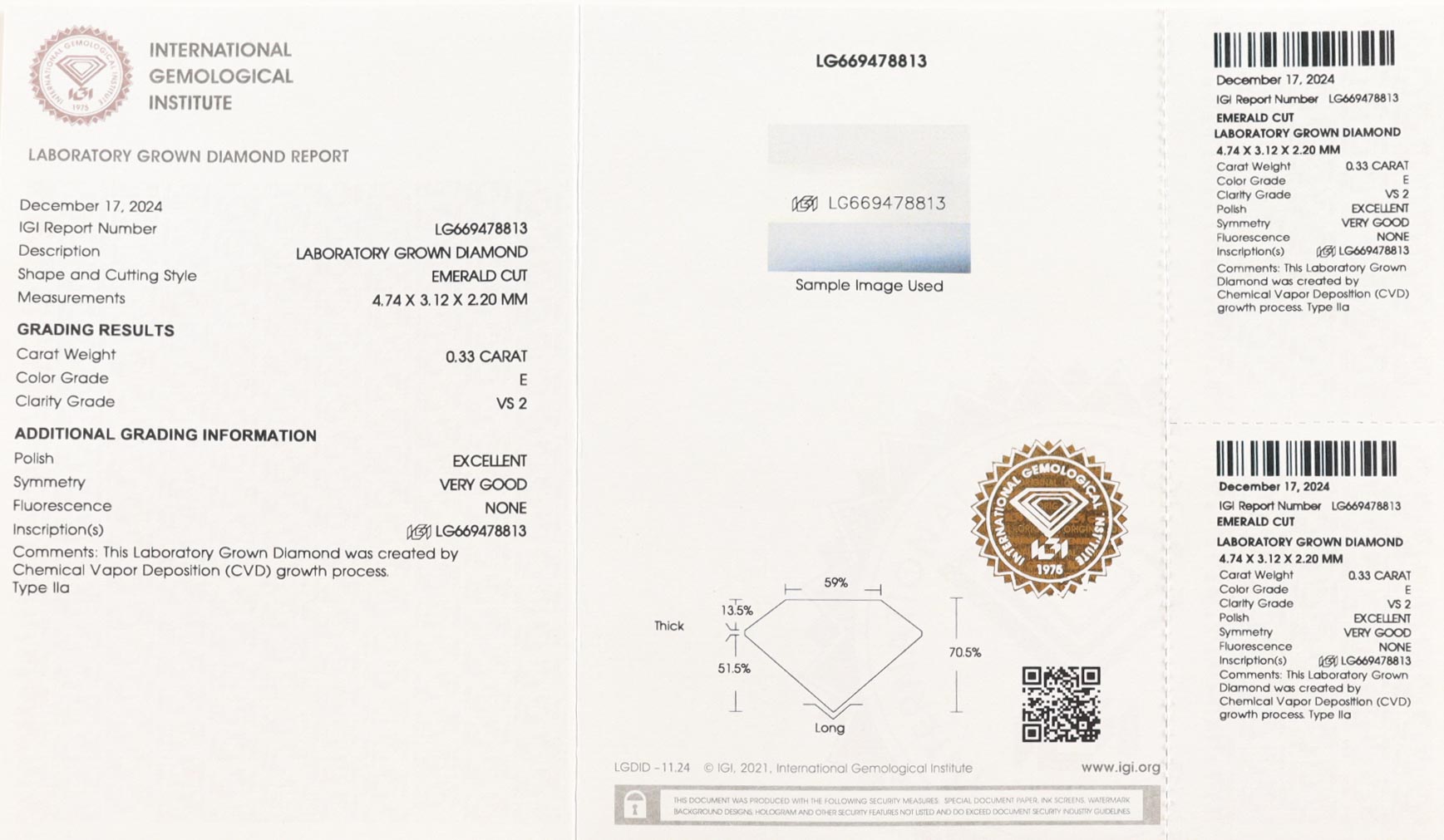 This piece includes paperwork from the International Gemological Institute (IGI).