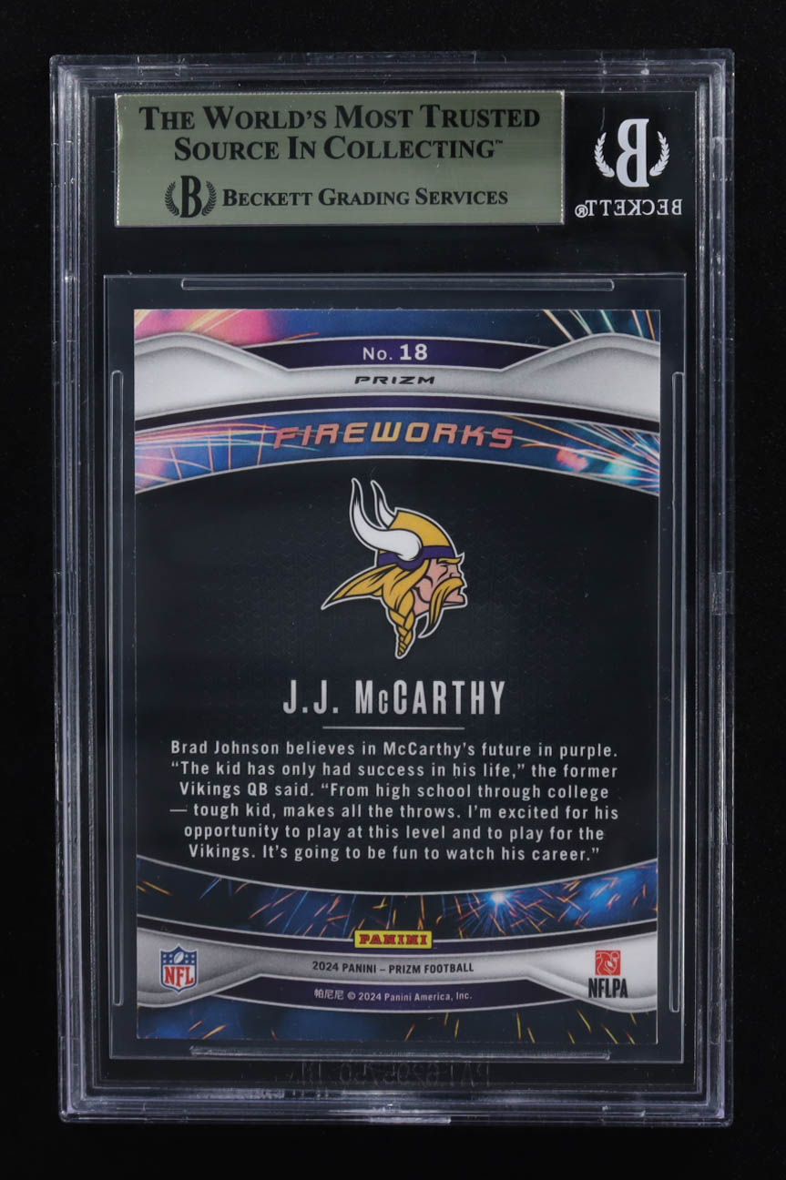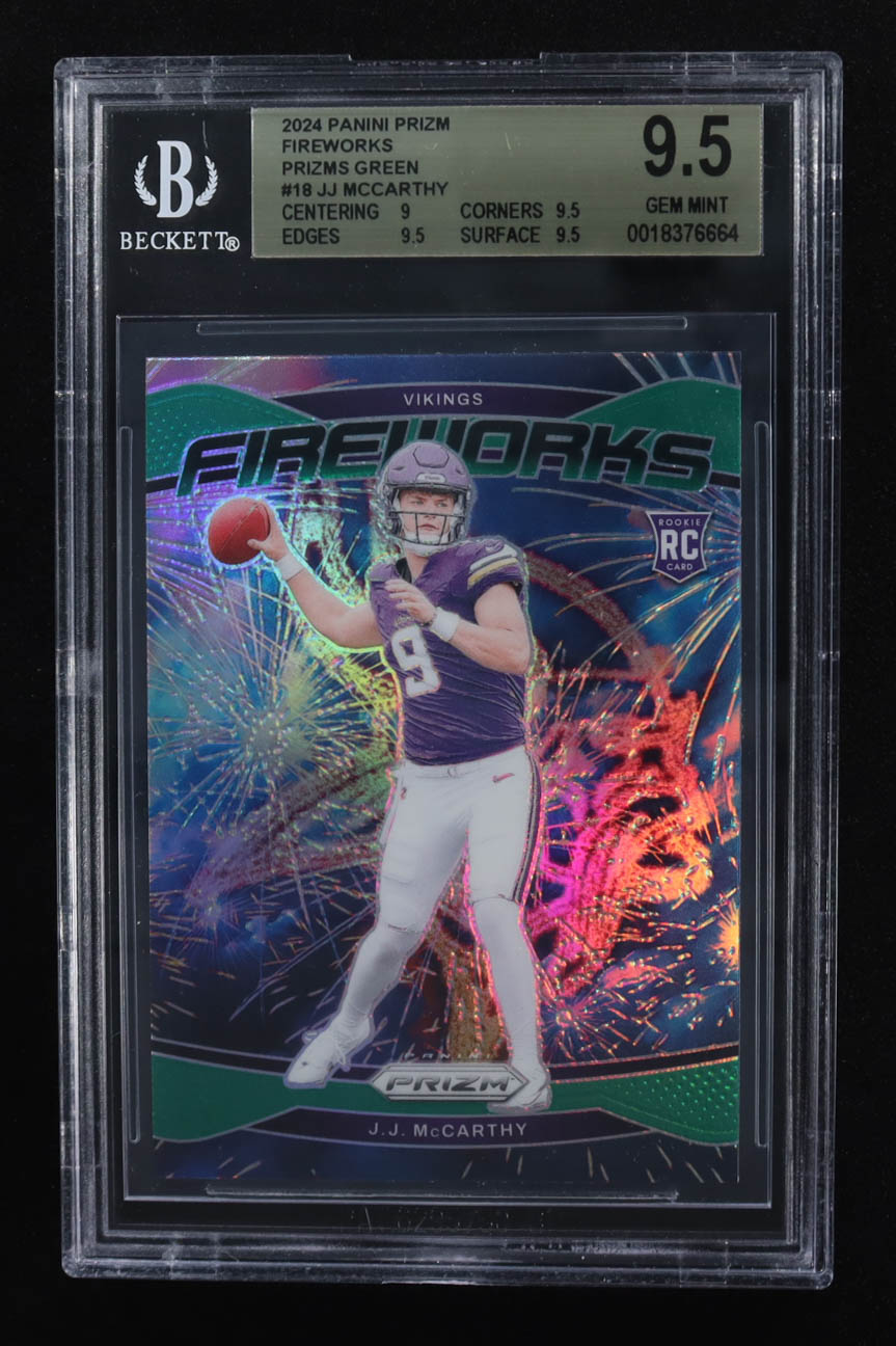 JJ McCarthy 2024 Panini Prizm Fireworks Prizms Green #18 RC (BGS 9.5)
