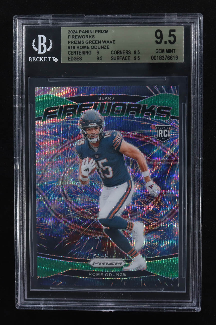 Rome Odunze 2024 Panini Prizm Fireworks Prizms Green Wave #19 RC (BGS 9.5)