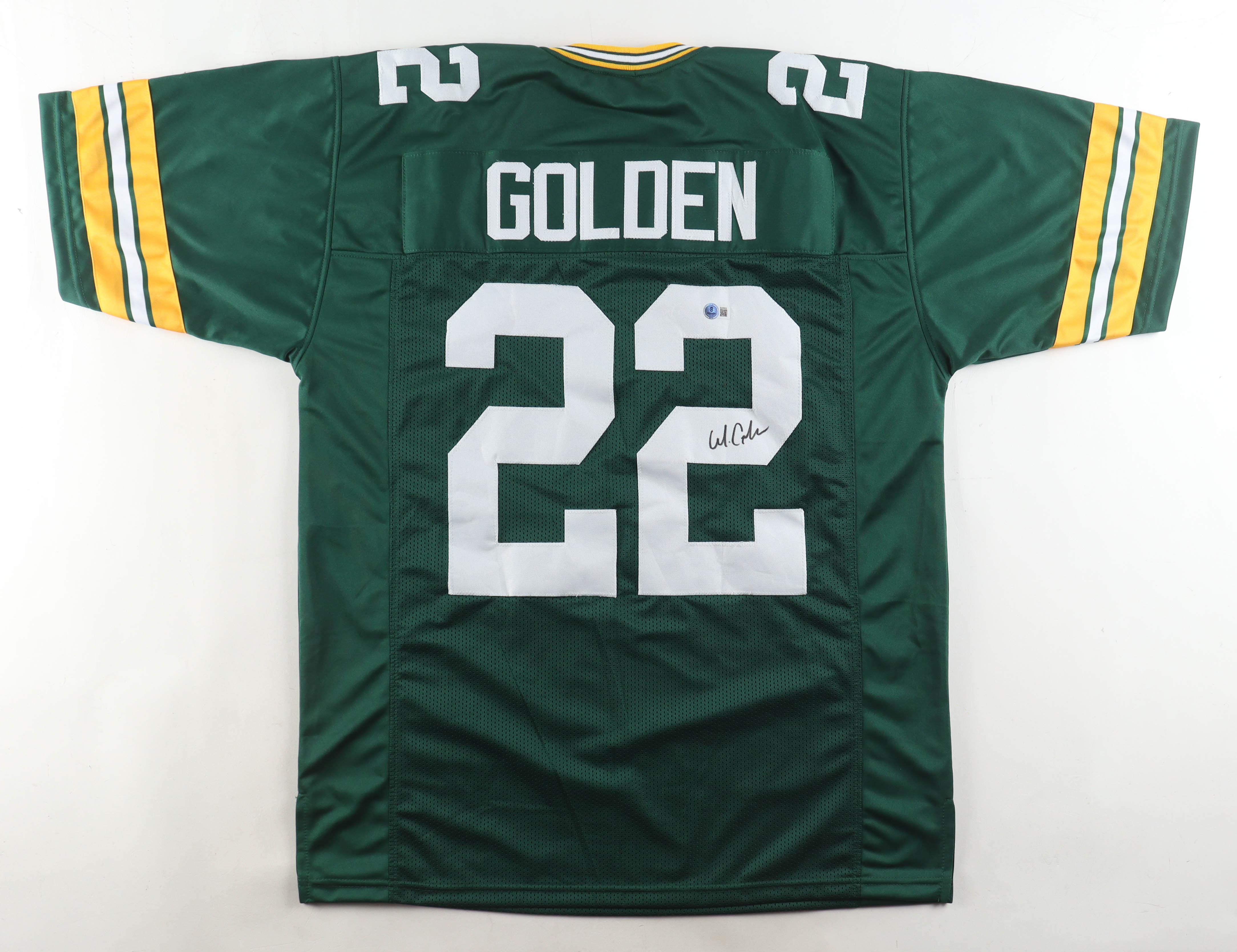 Custom jersey. Everything sewn on, size XL. Hand-signed by Matthew Golden.