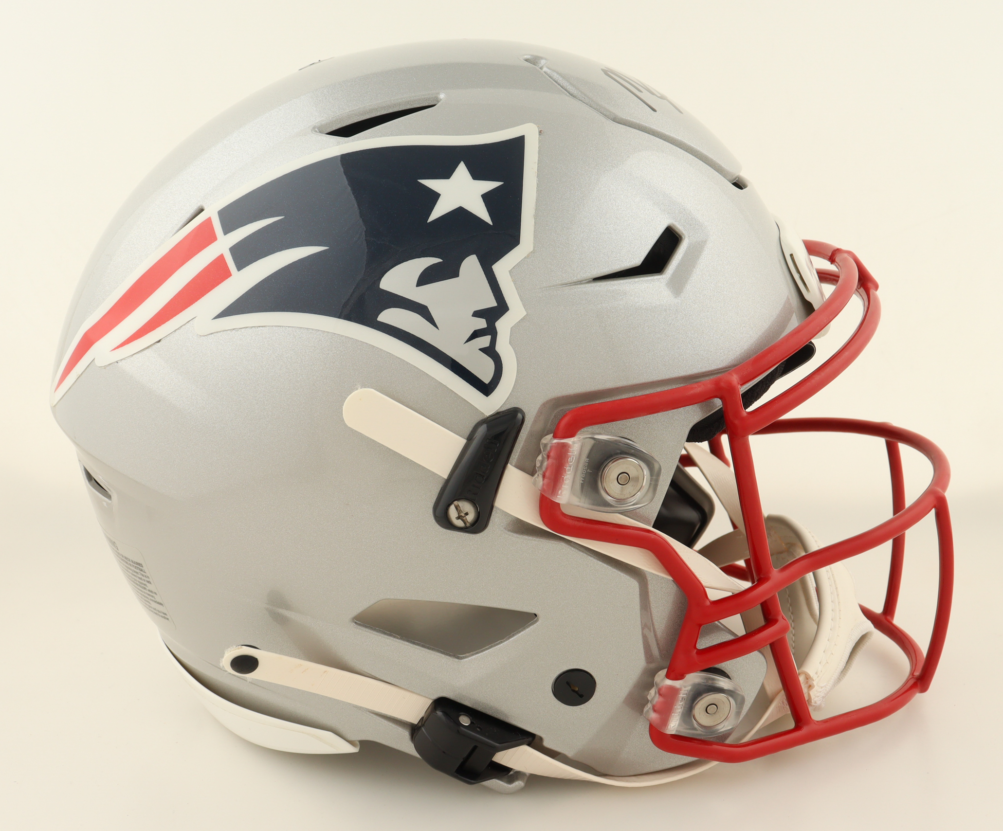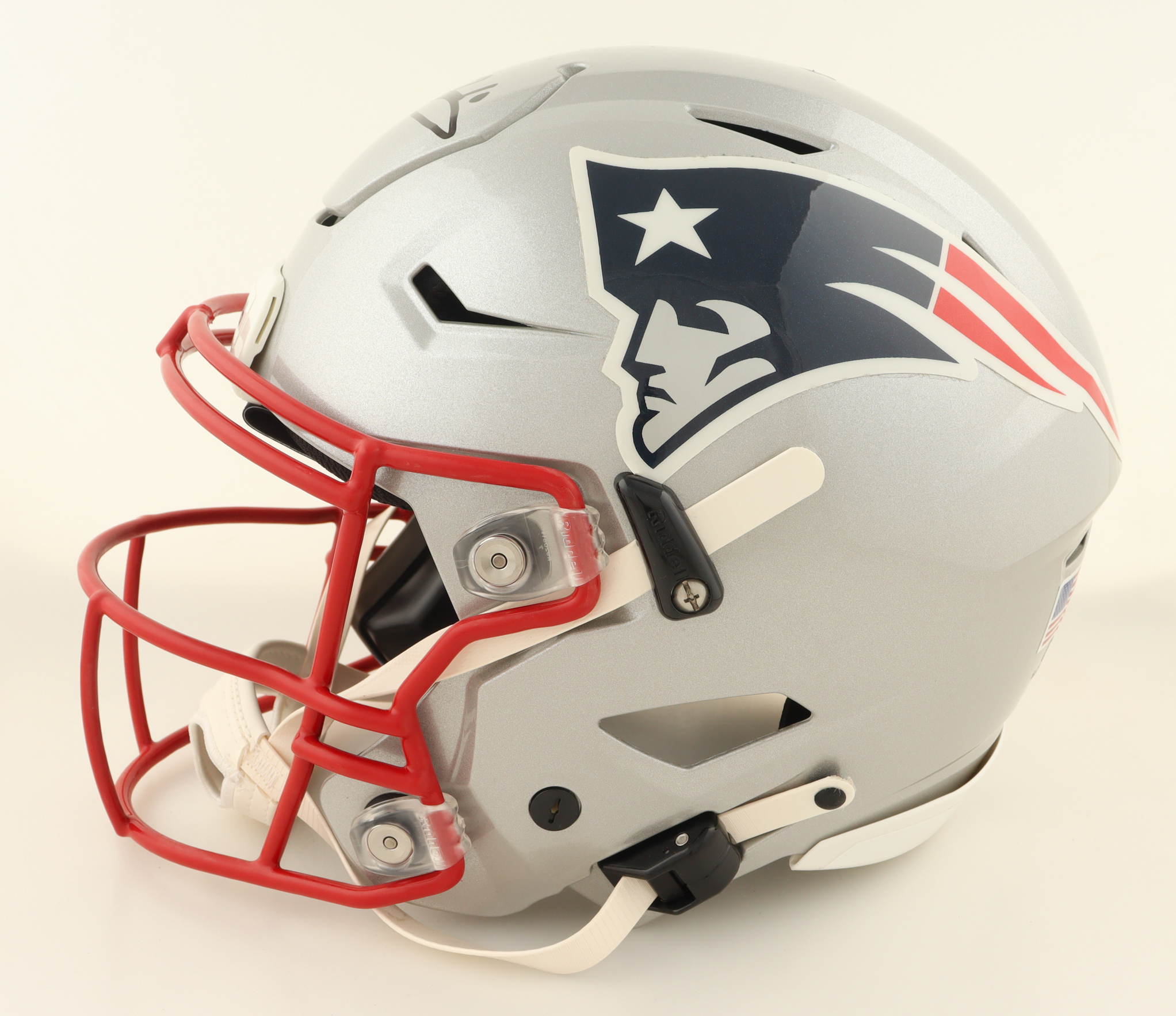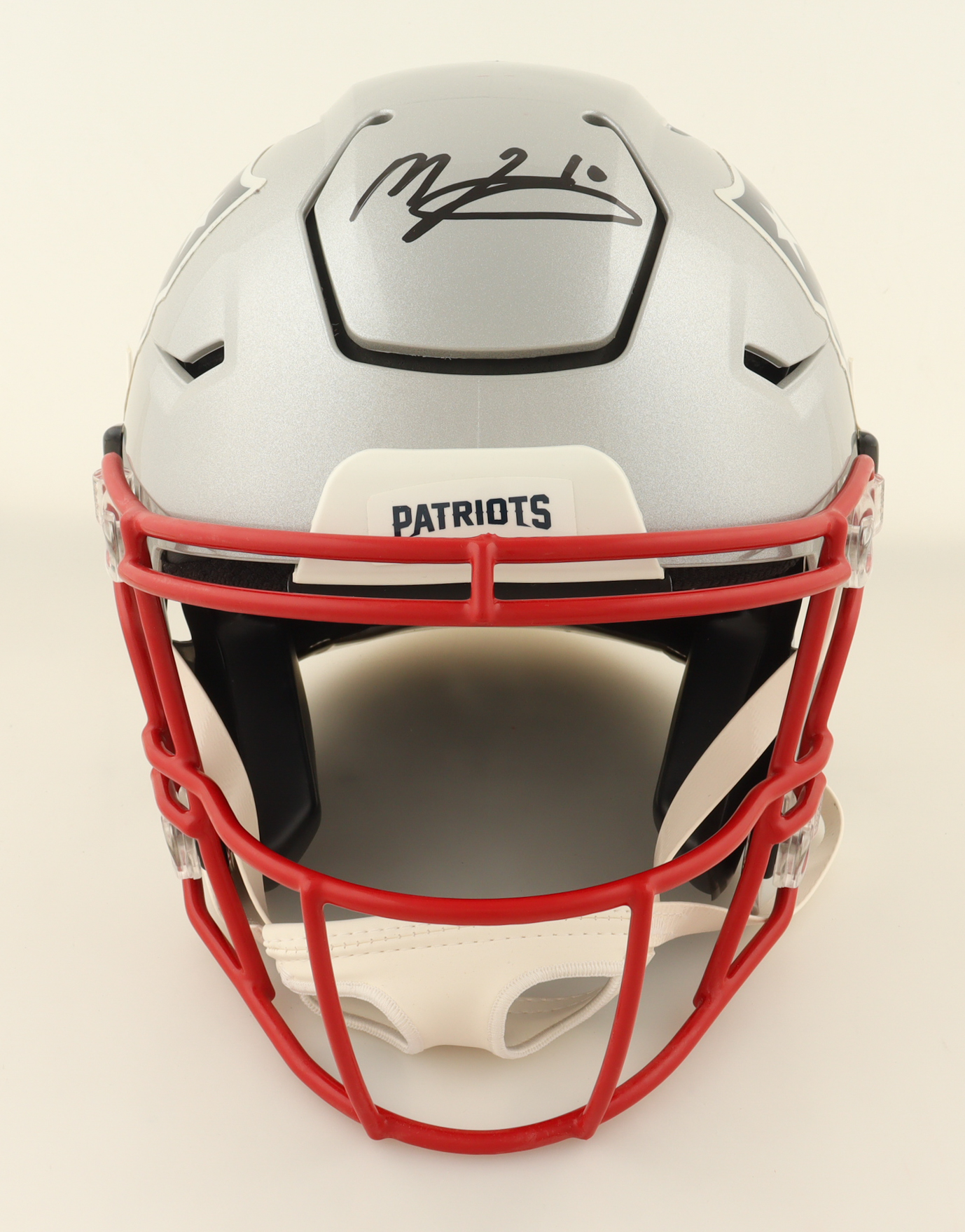 Riddell New England Patriots Full-Size Authentic On-Field SpeedFlex helmet. Hand-signed by Mac Jones.