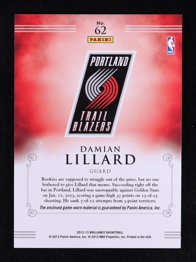 Damian Lillard 2012-13 Panini Brilliance Game Time Jerseys #62 RC