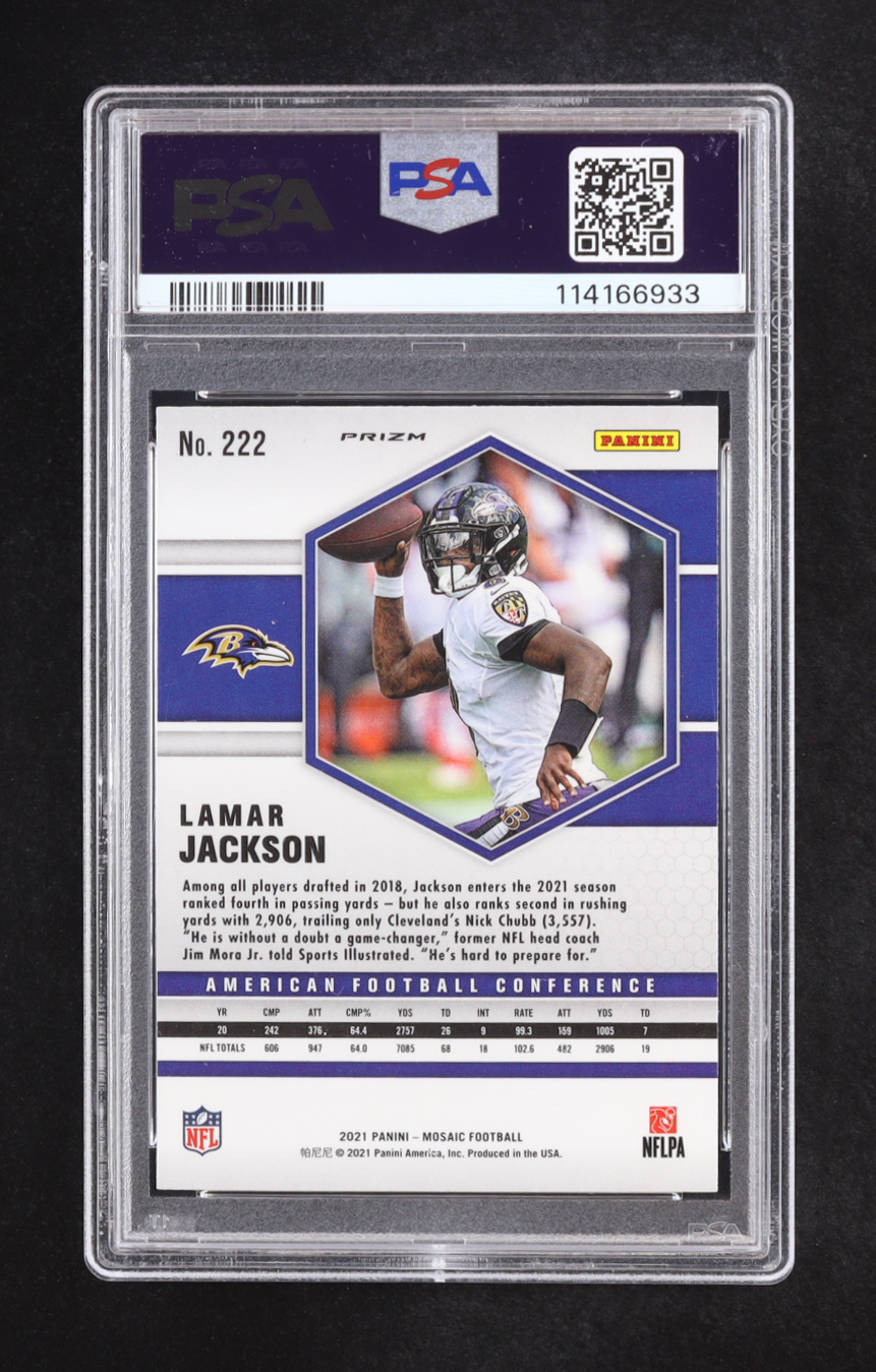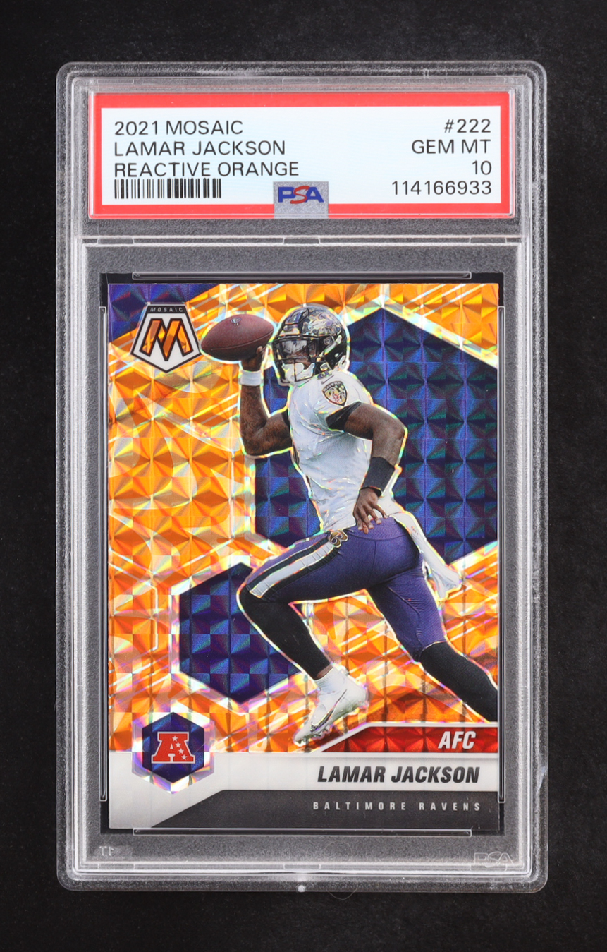 Lamar Jackson 2021 Panini Mosaic Mosaic Reactive Orange #222 AFC (PSA 10)