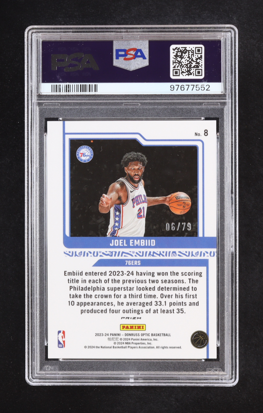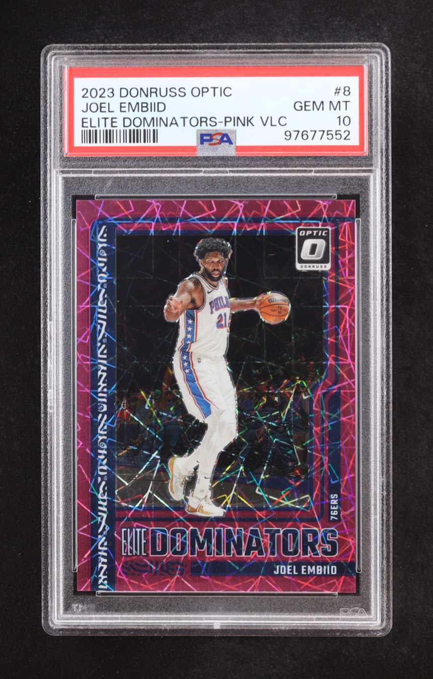 Joel Embiid 2023-24 Donruss Optic Elite Dominators Pink Velocity #8 #6/79 (PSA 10)