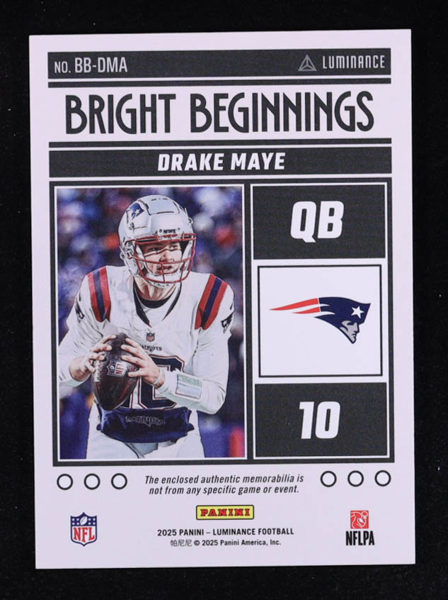 Drake Maye 2025 Panini Luminance Bright Beginnings Jerseys #6