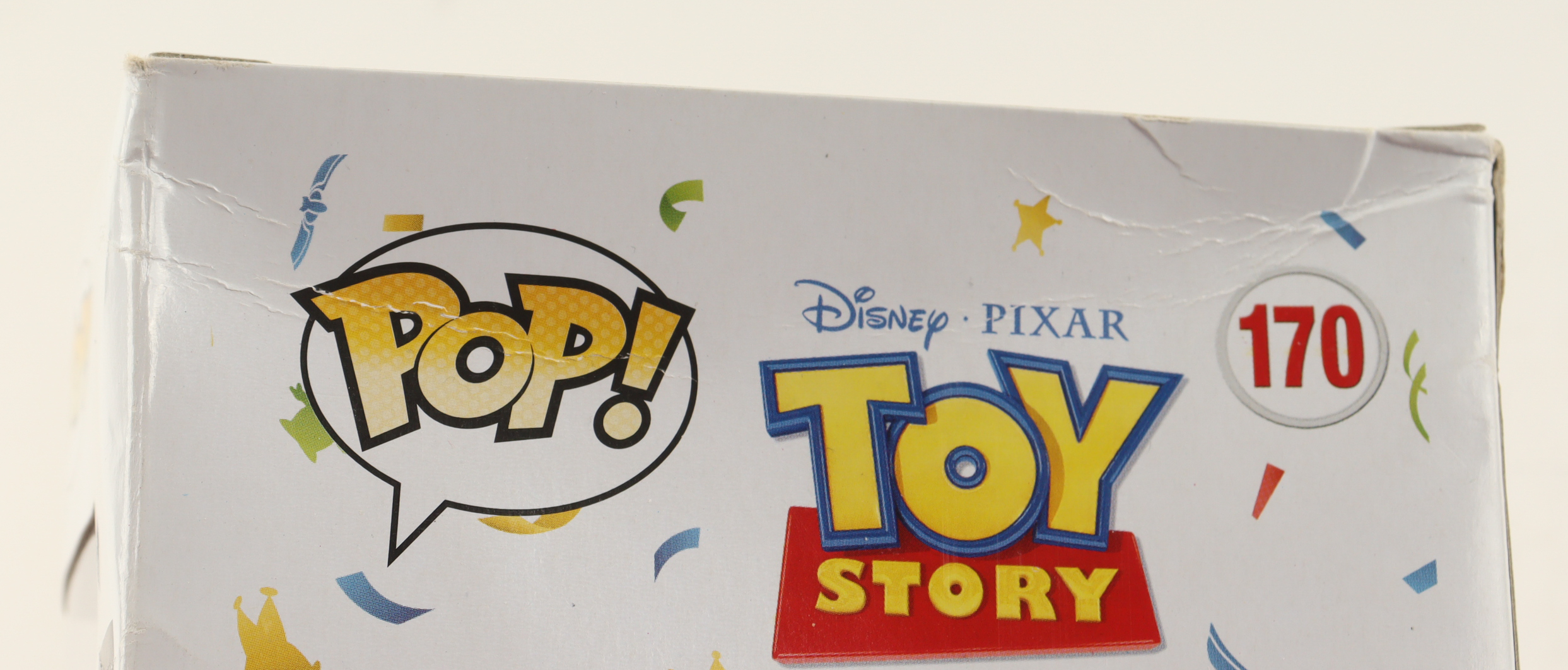 Vinyl figure measures approximately 4" tall. Hand-signed and inscribed on the packaging by John Ratzenberger (Hamm).