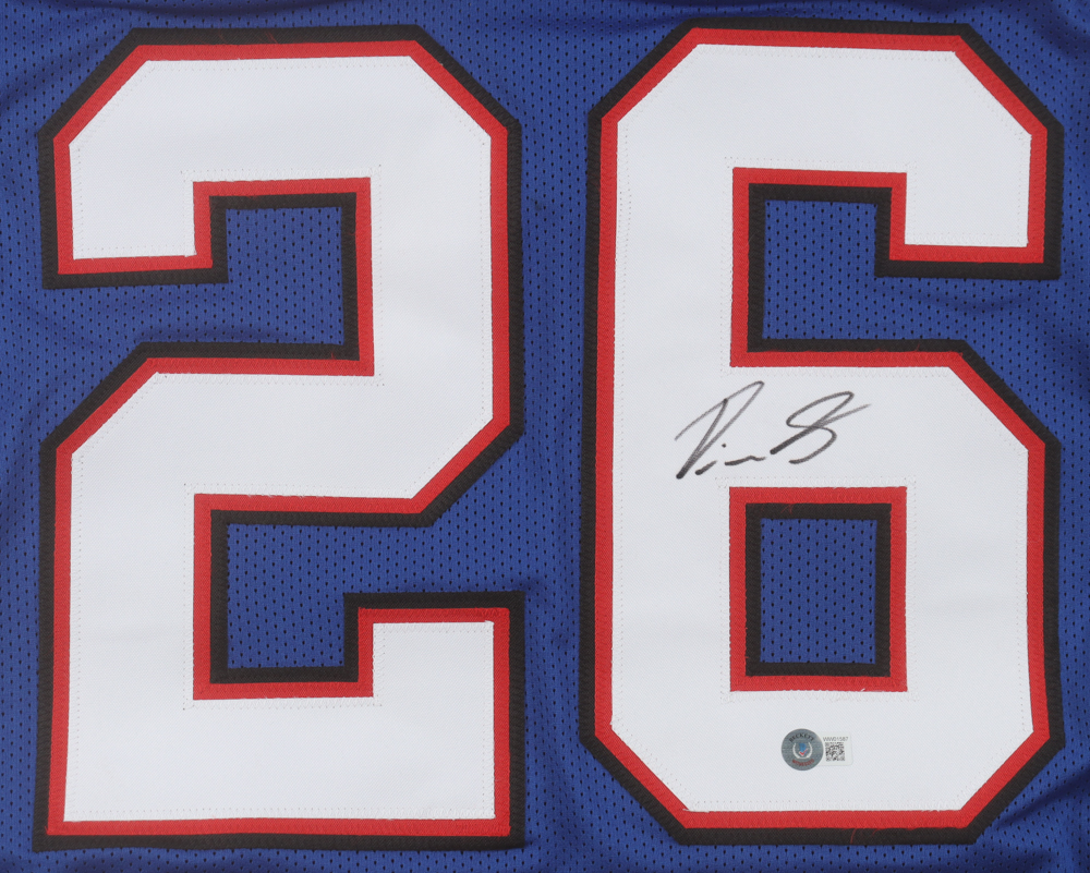 Custom jersey with everything sewn on, size XL. Hand-signed by Devin Singletary.